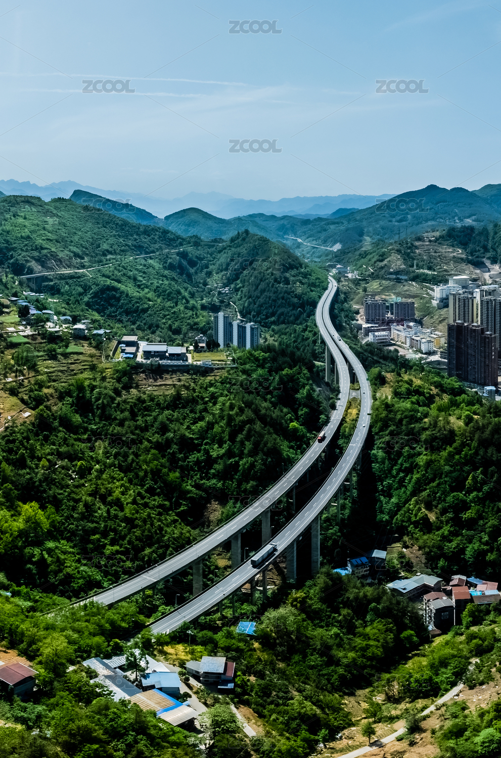 航拍从崇山峻岭间穿过的包茂高速吉首段