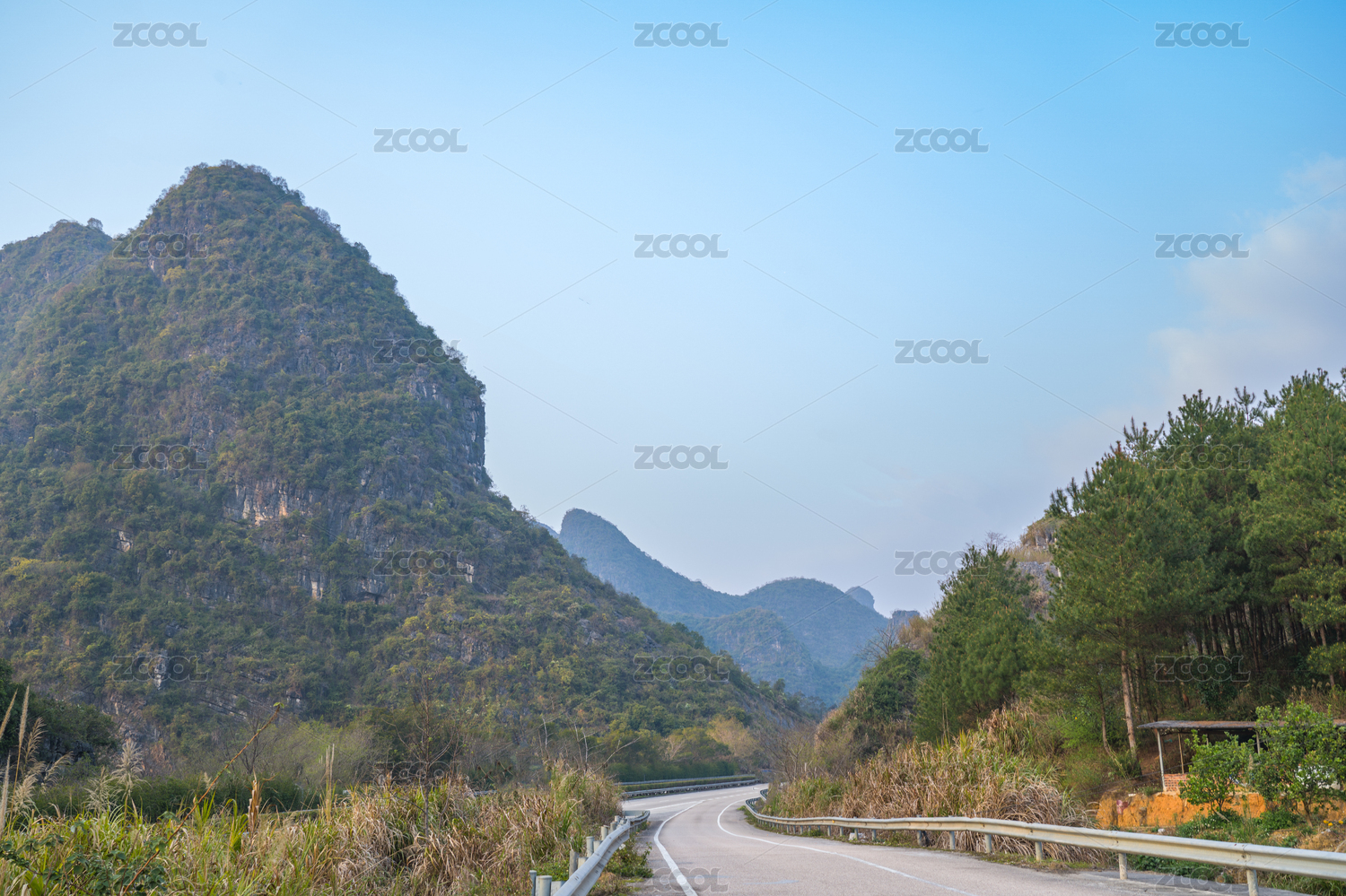 蓝天下广西包茂高速黄姚段山水风光美景