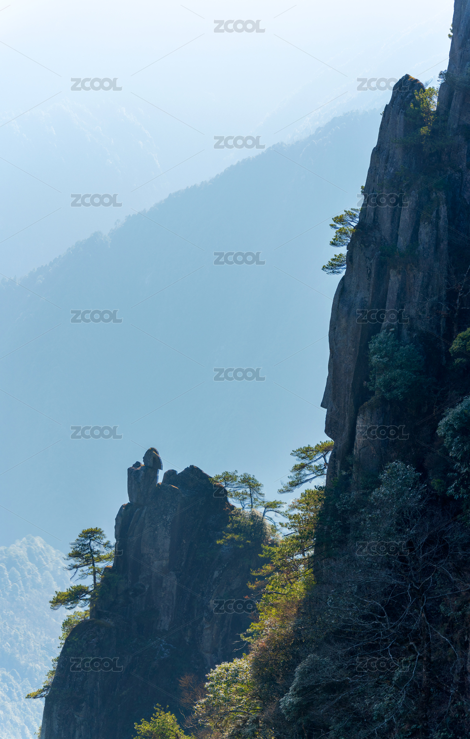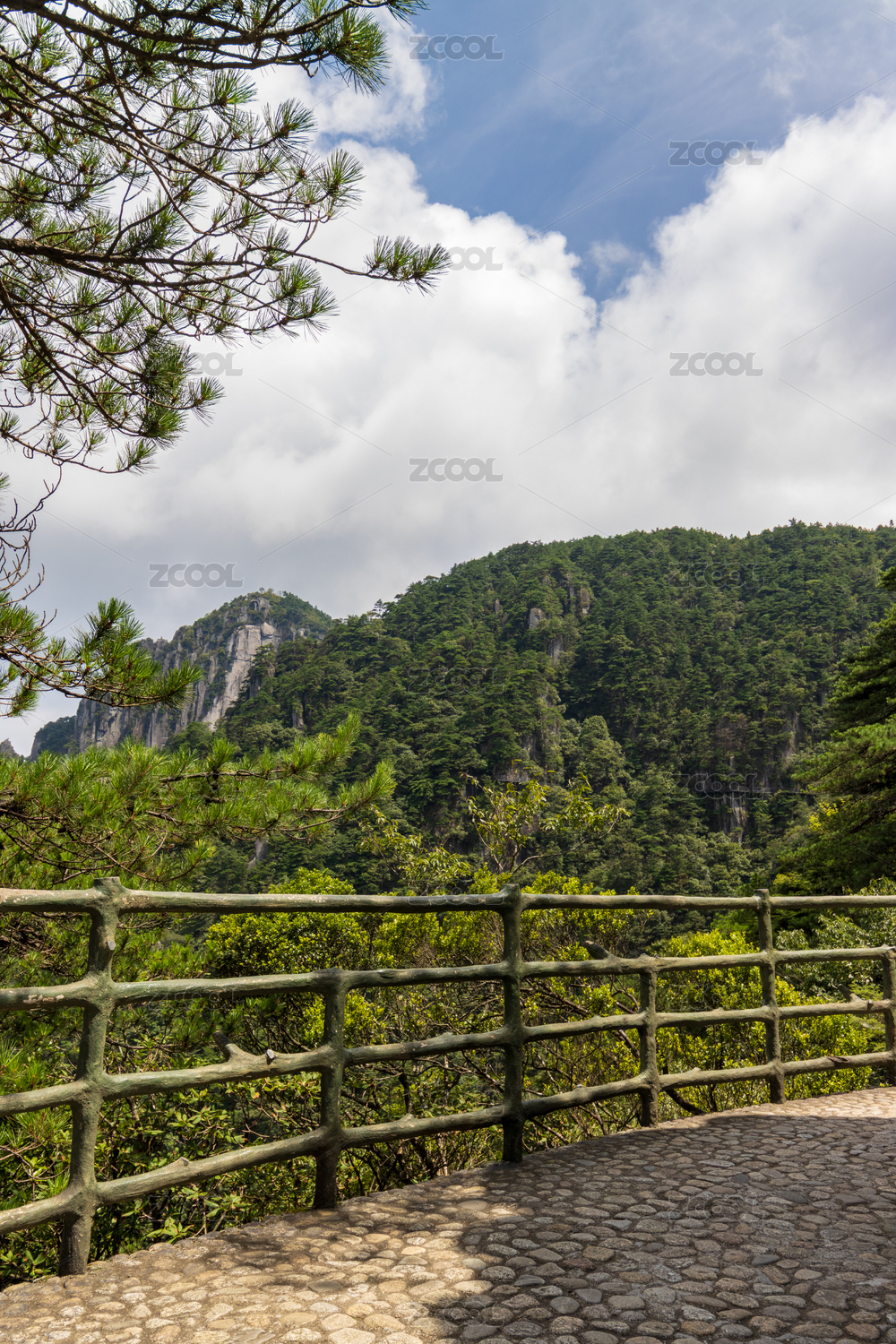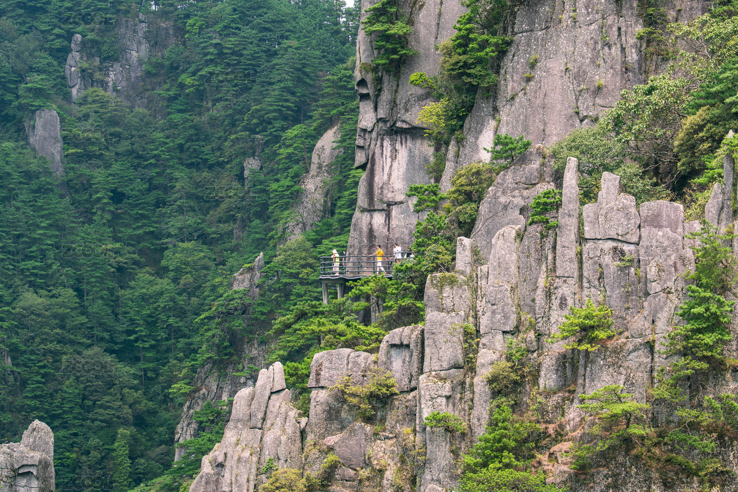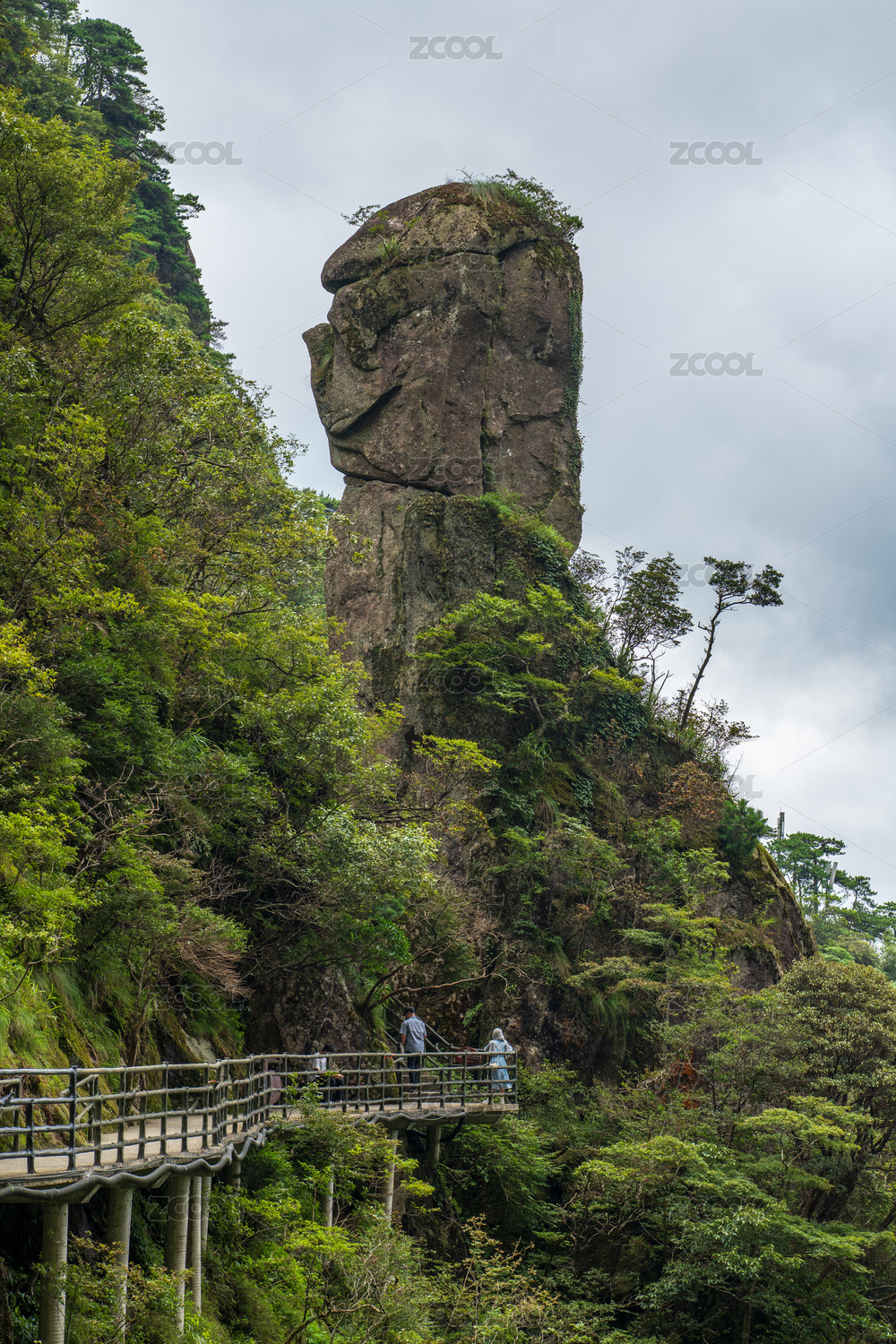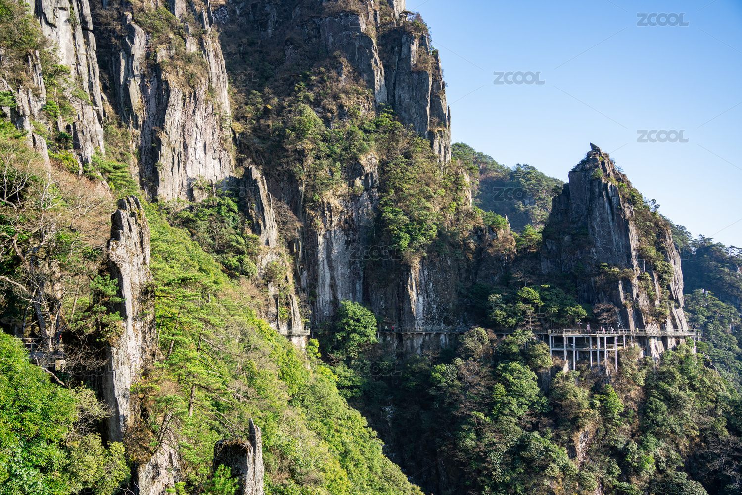 江西武功山羊狮慕景区奇峰上的山间栈道