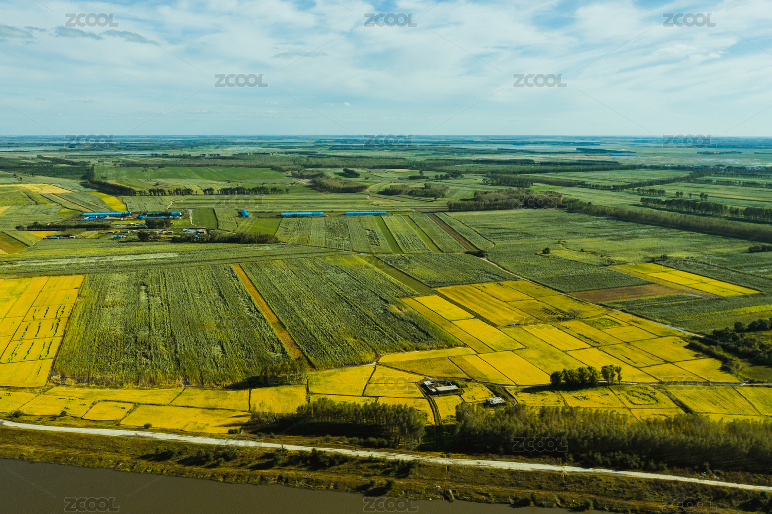 航拍黑龙江大庆市杜尔伯特县南引水渠边丰收
