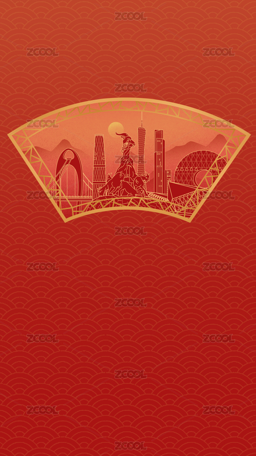 中国广州中国风新年中秋扇形古典窗户城市