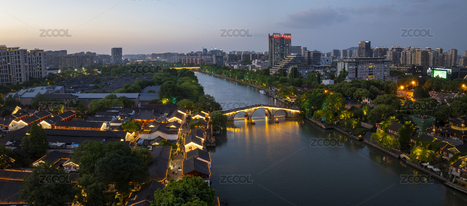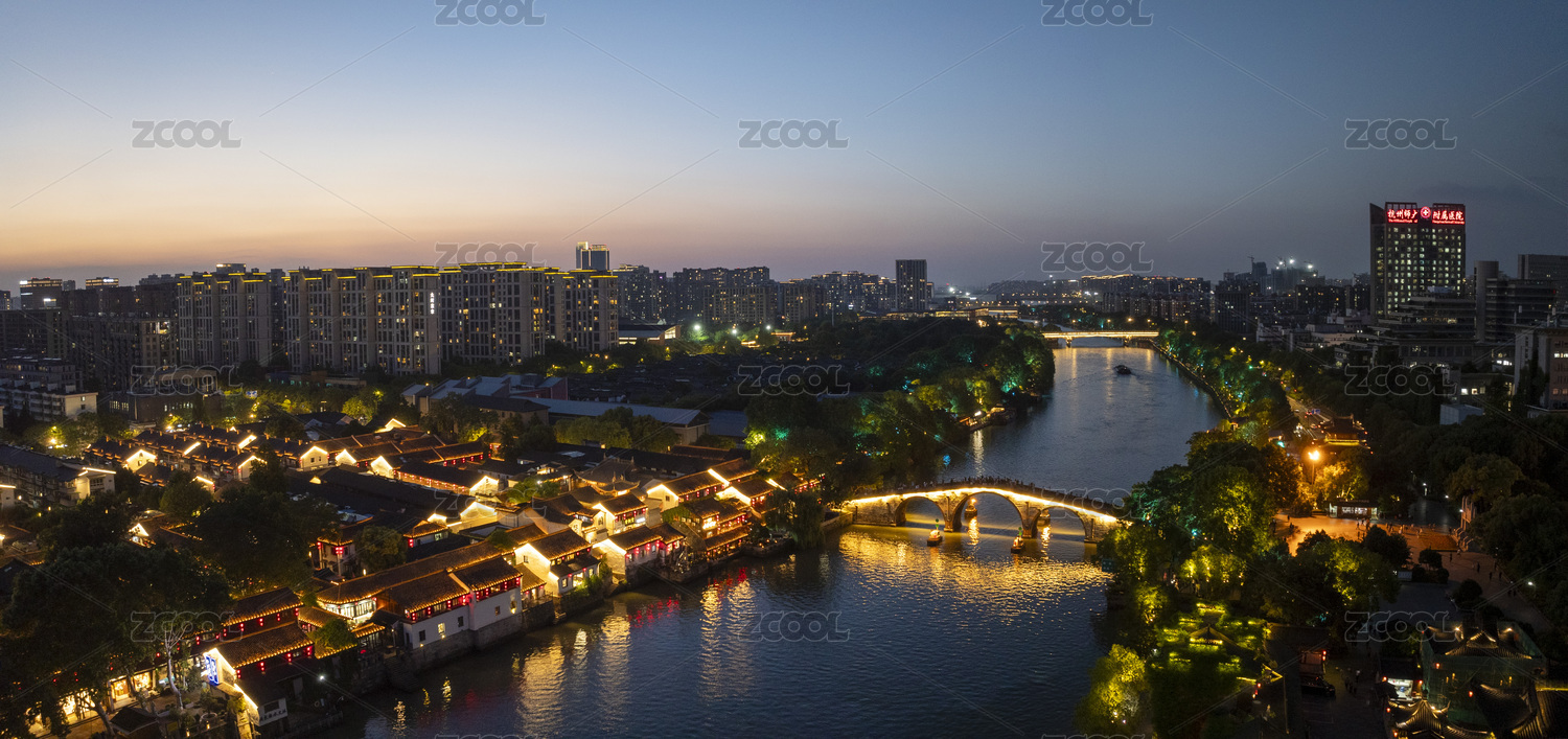 浙江省杭州拱墅区大运河拱宸桥夜景航拍