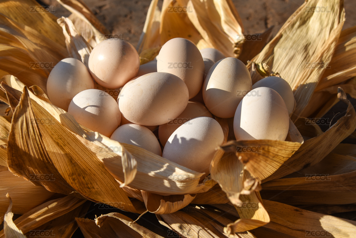 半个敲开放在鸡蛋上的农家绿皮土鸡蛋