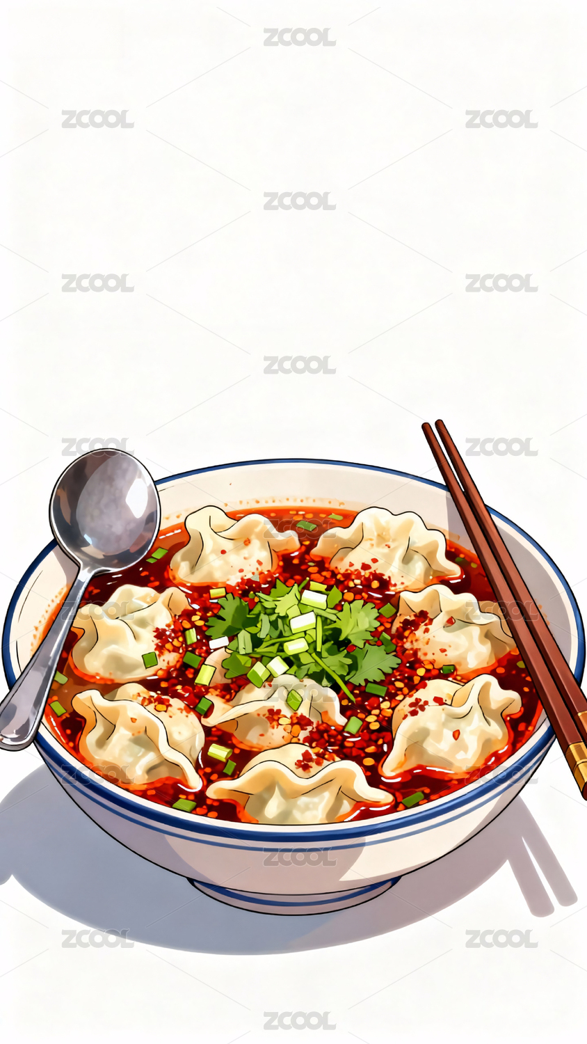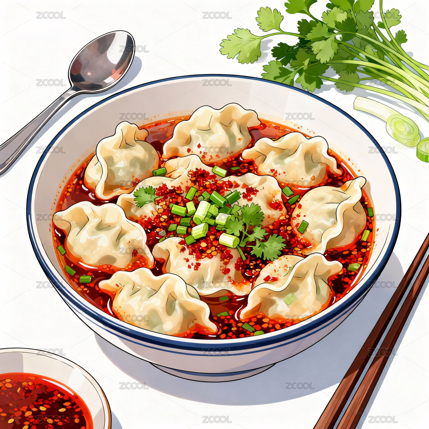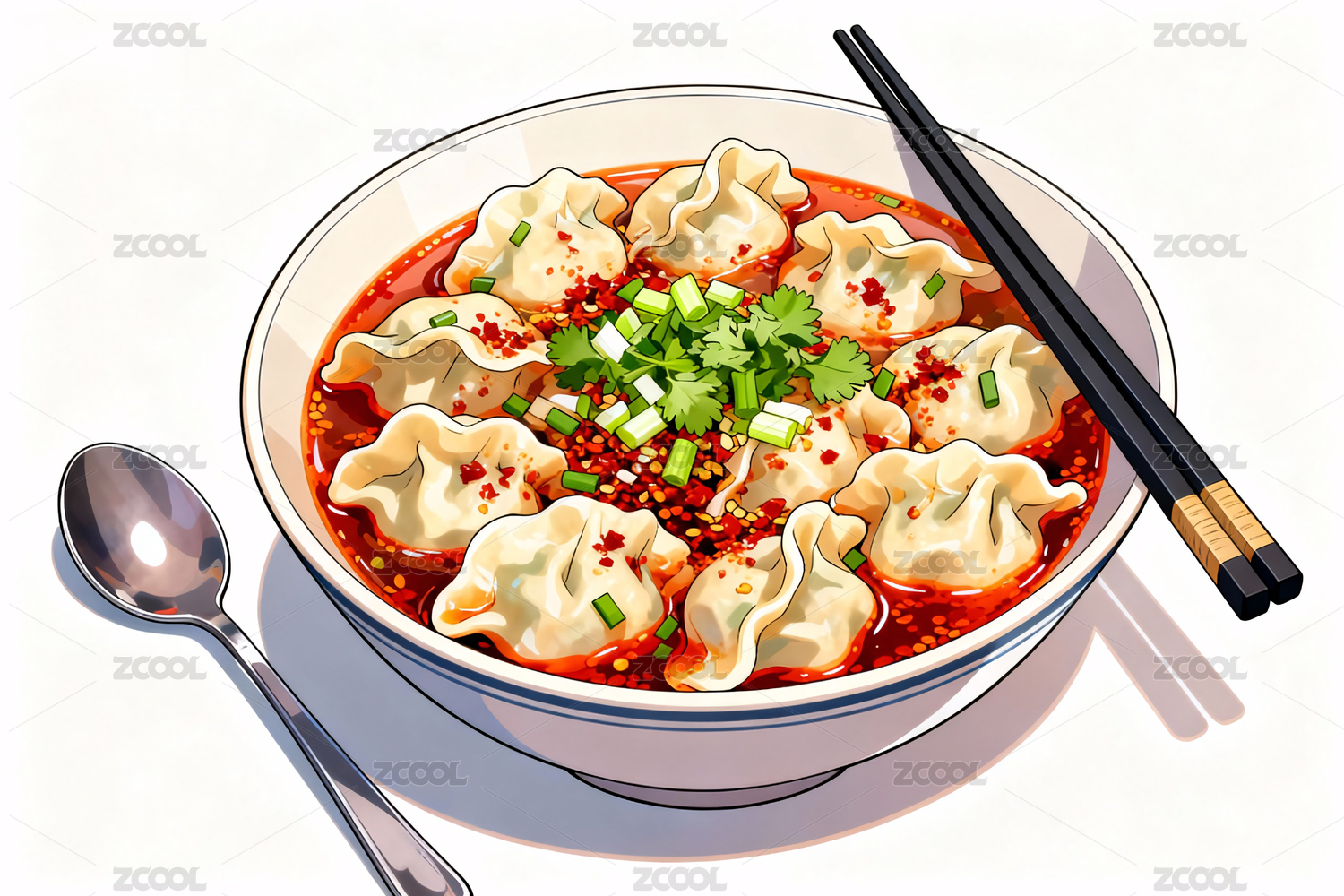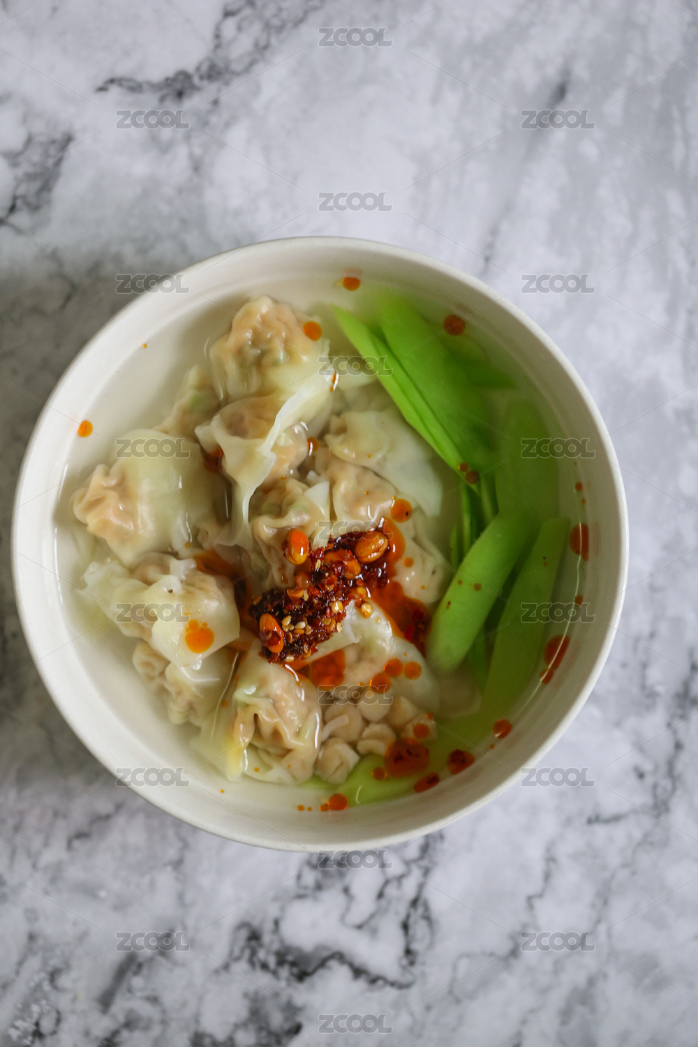 放在大黑碗里辣椒油淋麻辣味抄手小吃