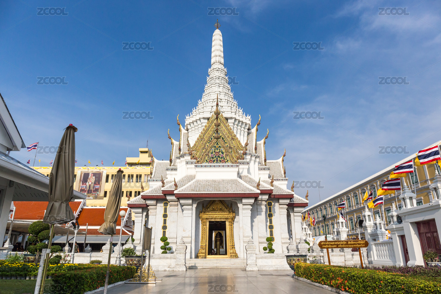 剪纸风格泰国城市地标建筑大皇宫与玉佛寺插画
