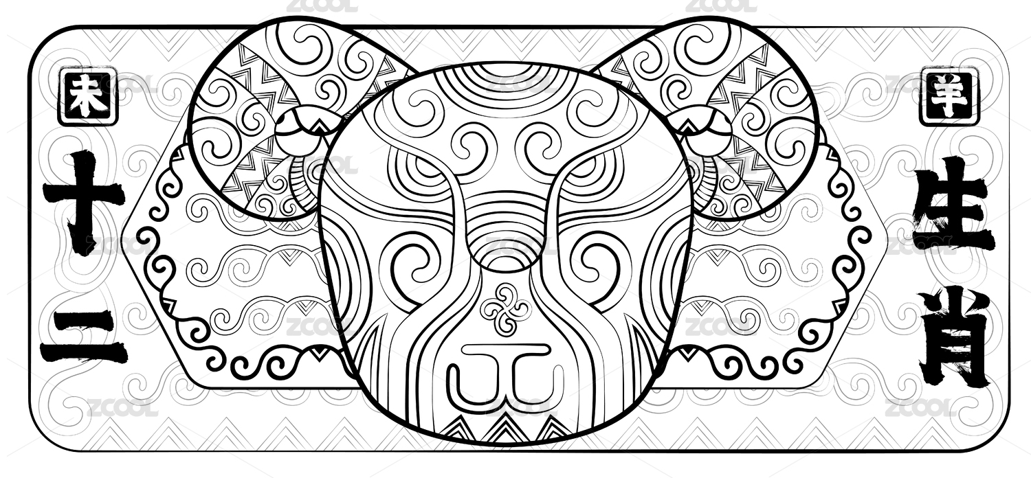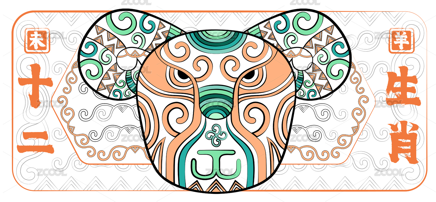 简约线描十二生肖羊眉吐气中国纹样矢量插画