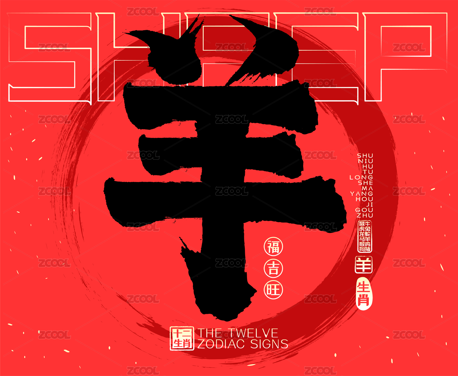 羊十二生肖喜庆水墨中国风矢量书法字