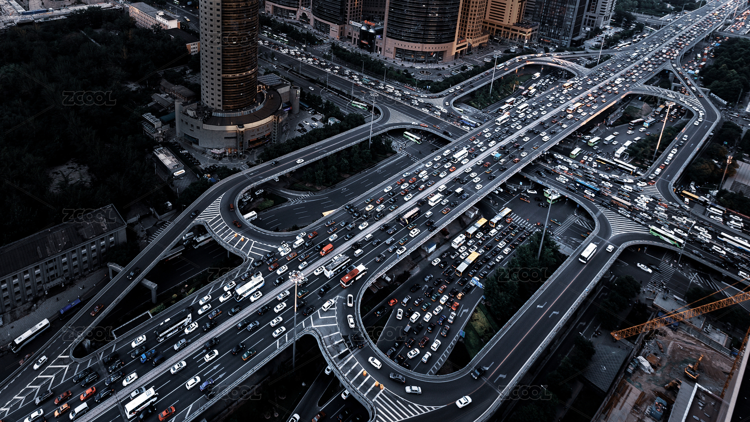 高视角俯瞰拥挤的马路