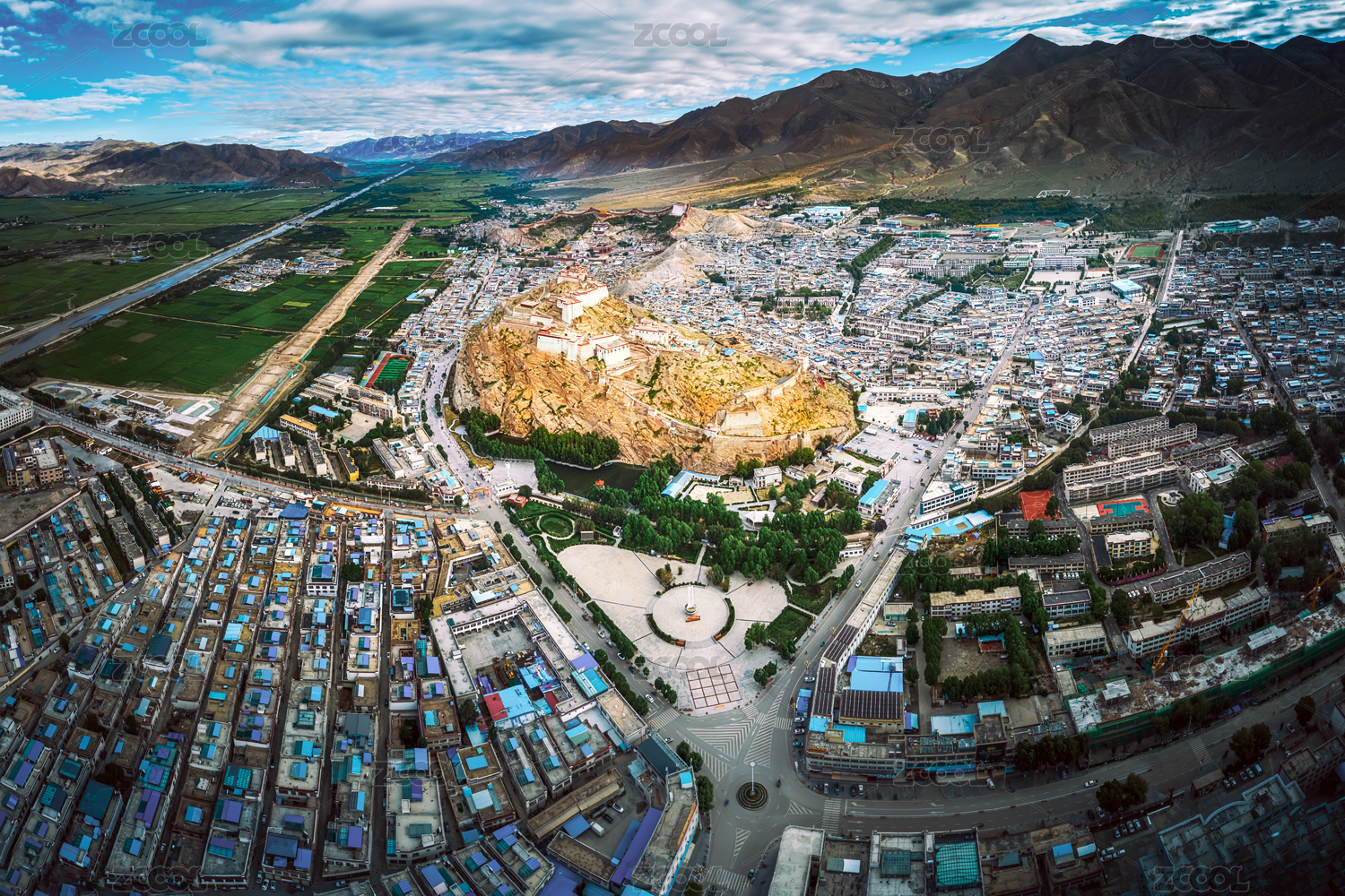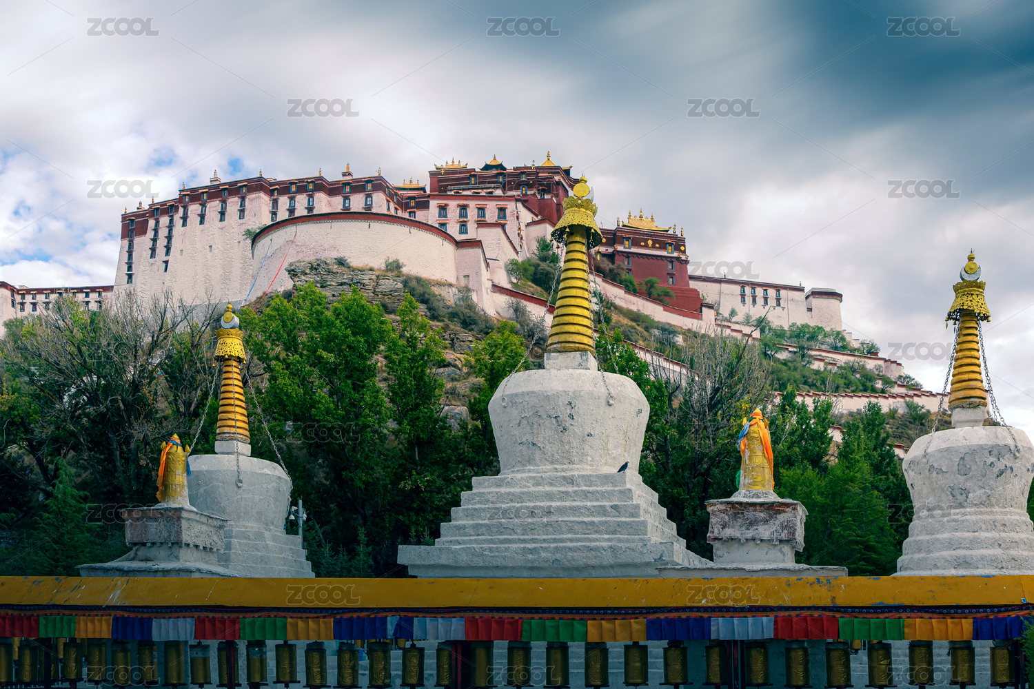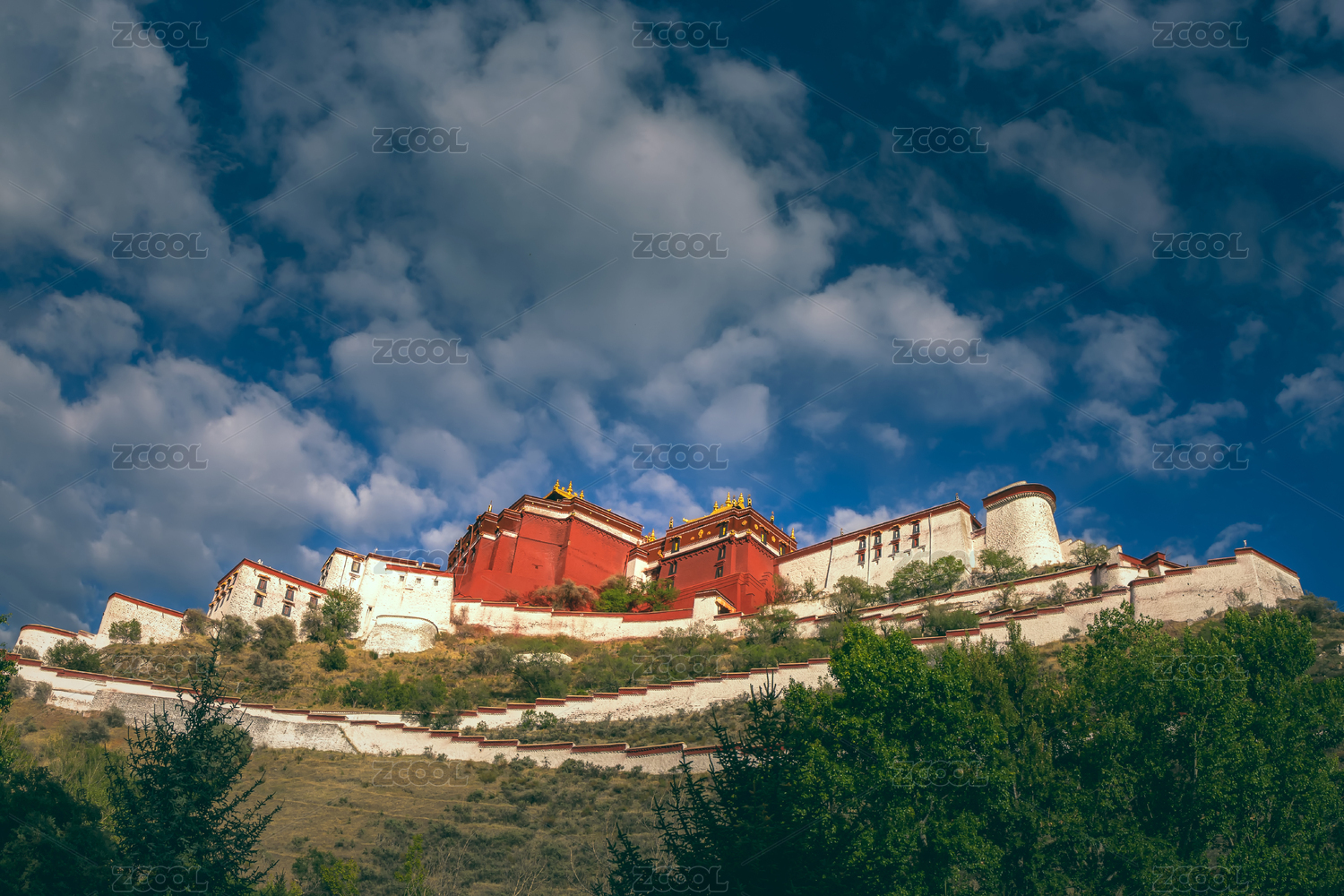 中国西藏拉萨蓝天白云下的布达拉宫背面