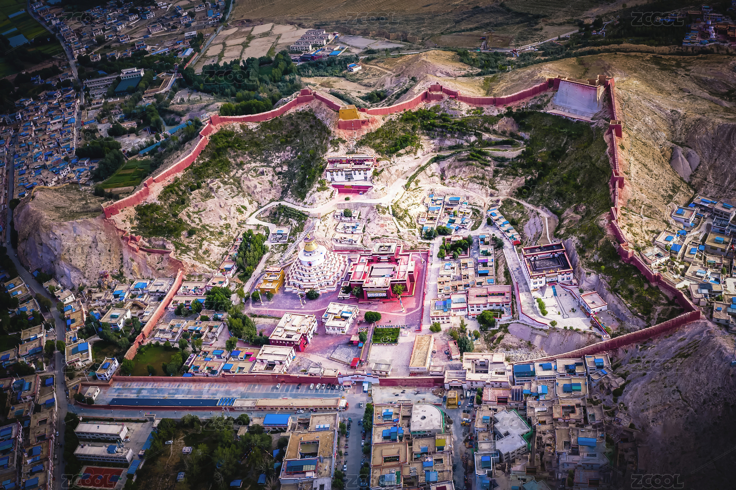 航拍中国西藏拉萨市达孜区扎耶巴寺