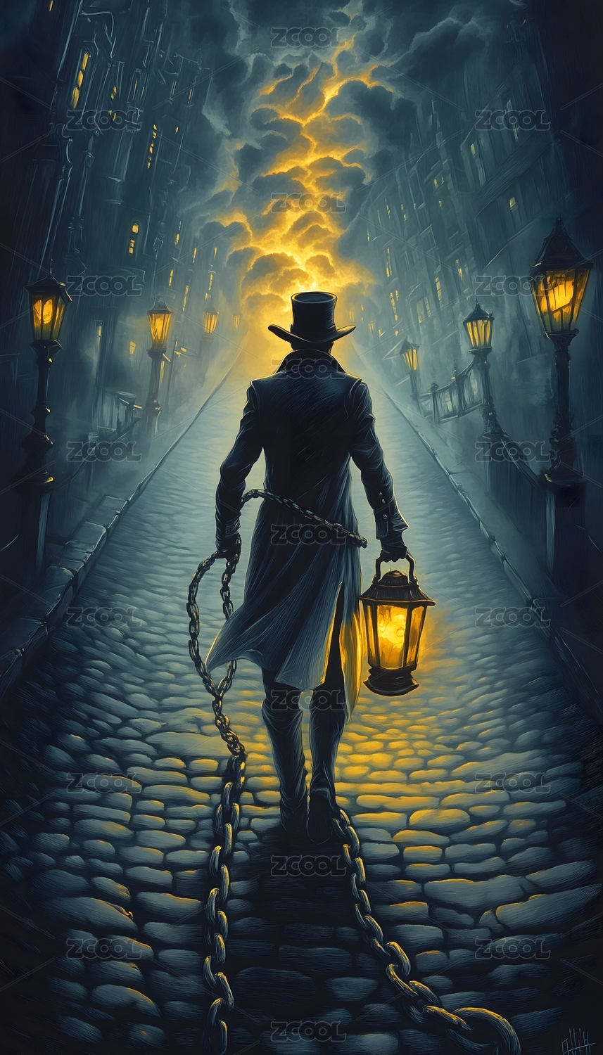 黑夜离开古宅穿越森林的巫师手拿魔杖