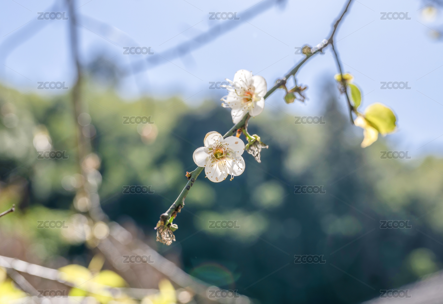 中央构图的迎春樱花朵