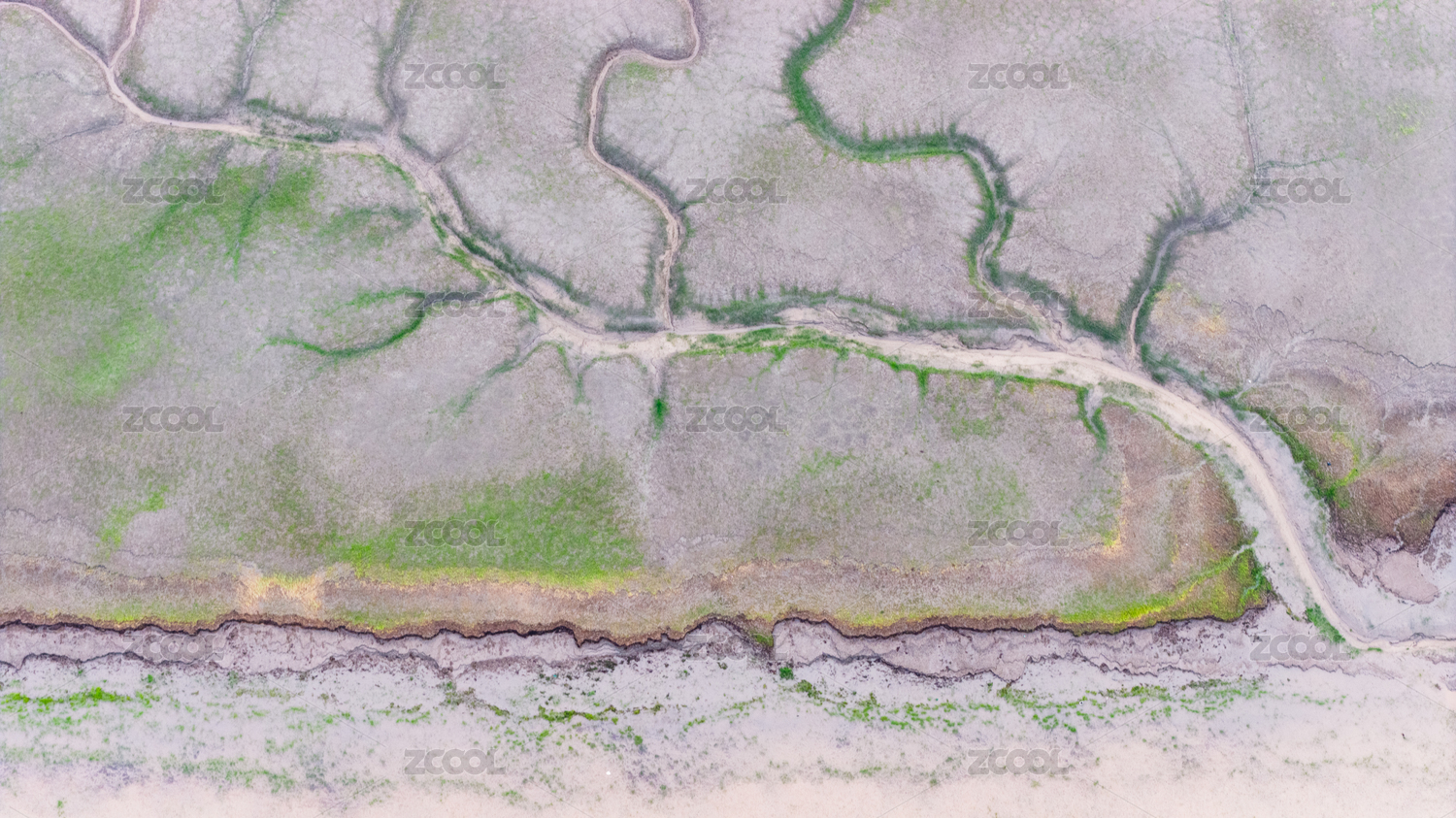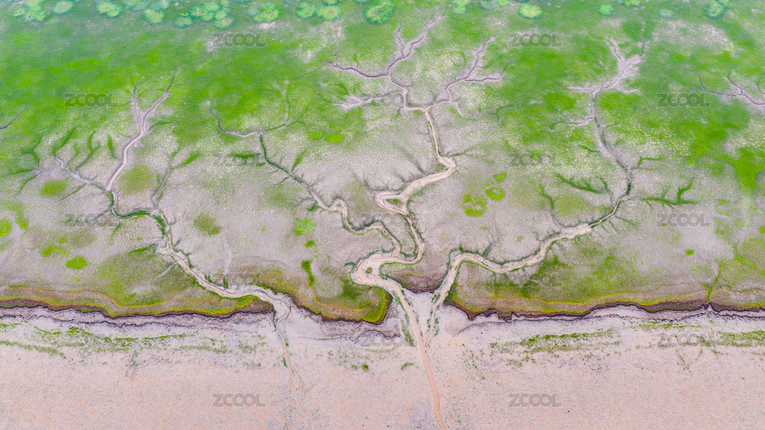 俯瞰上海崇明东滩湿地独特的潮沟地貌