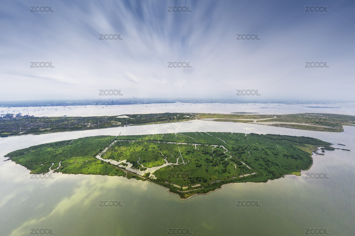 俯瞰上海长兴岛青草沙水库