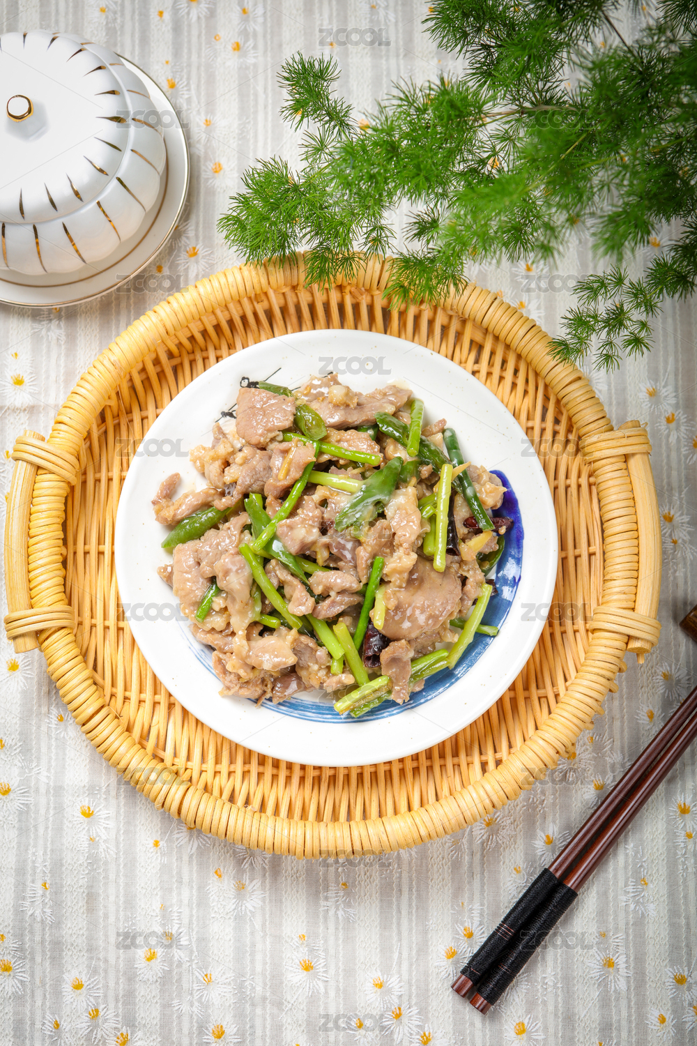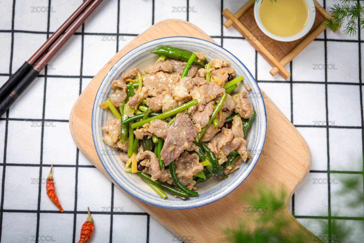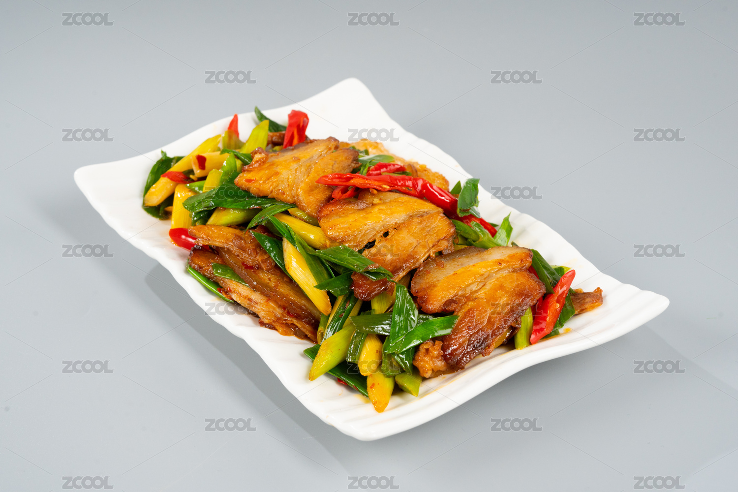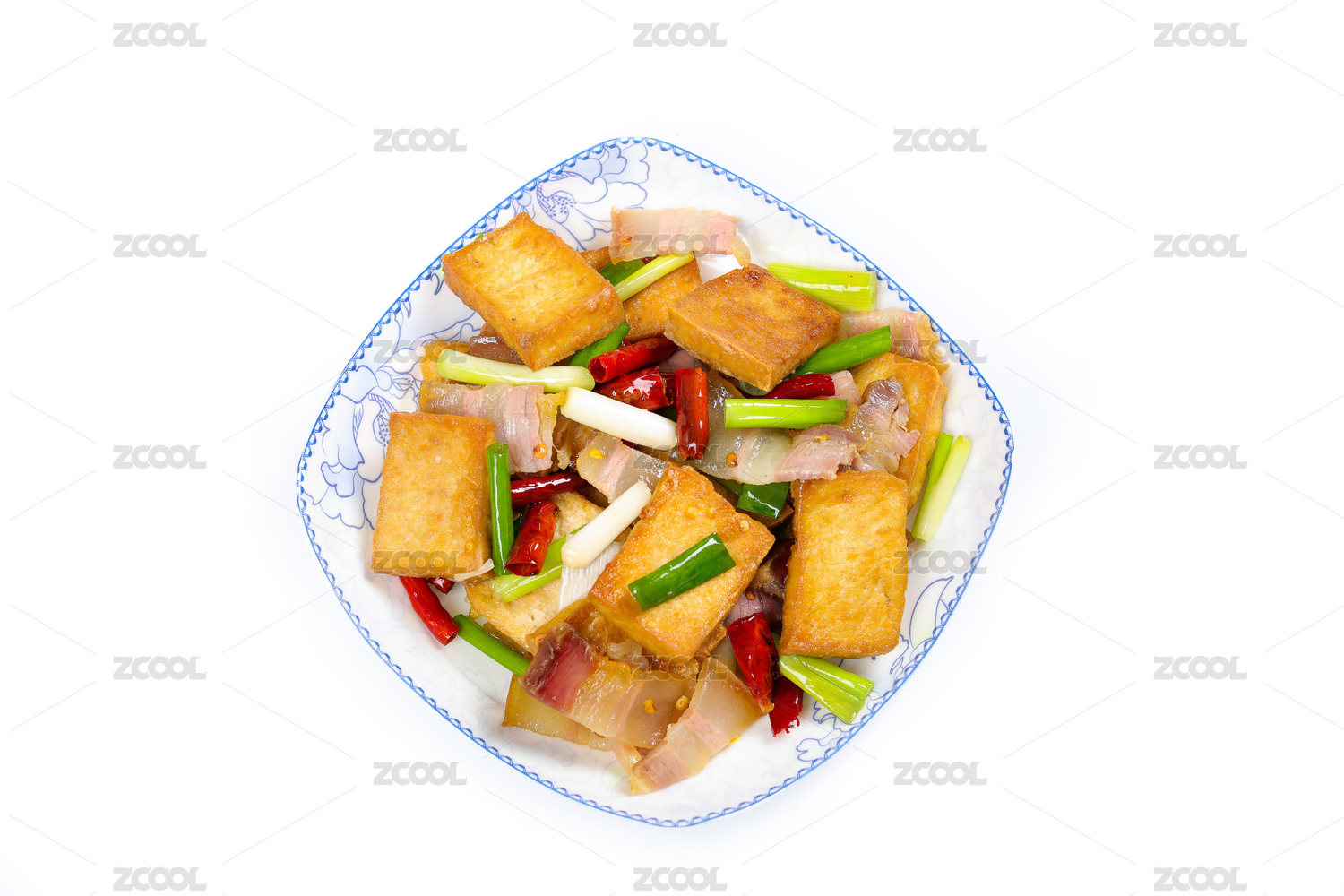 家常小炒菜肴蒜苗煎豆腐炒肉片