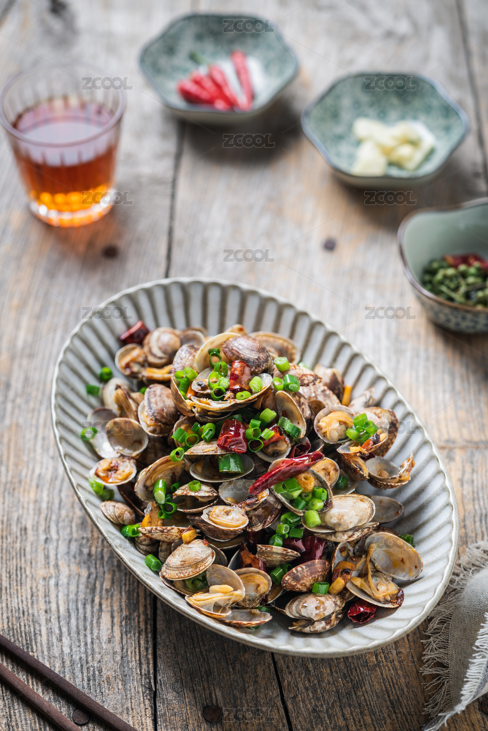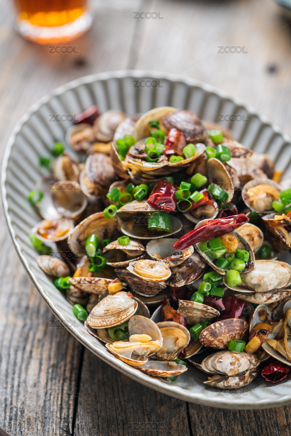 一盘美味的中国菜辣椒炒花甲