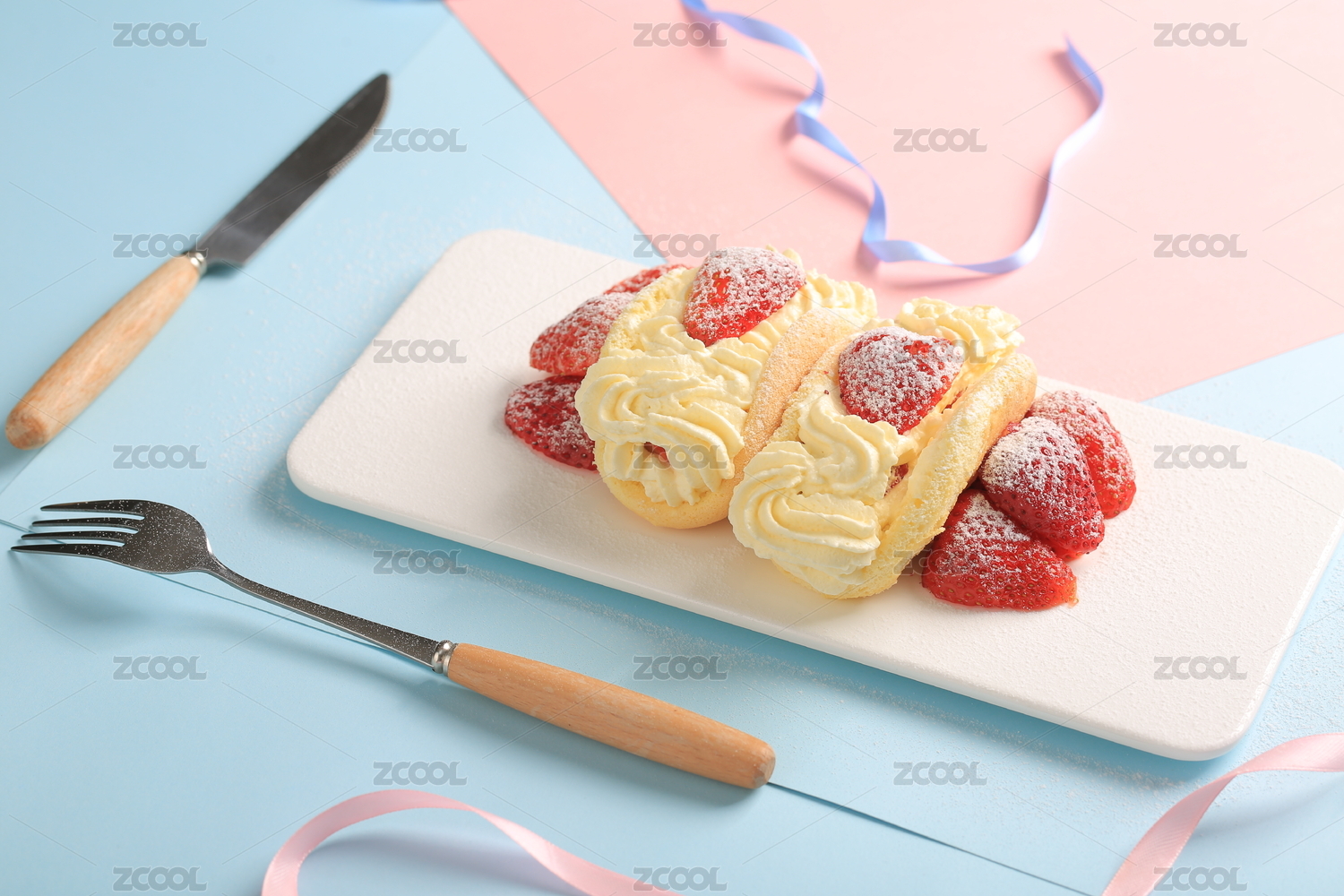 草莓甜品与餐具