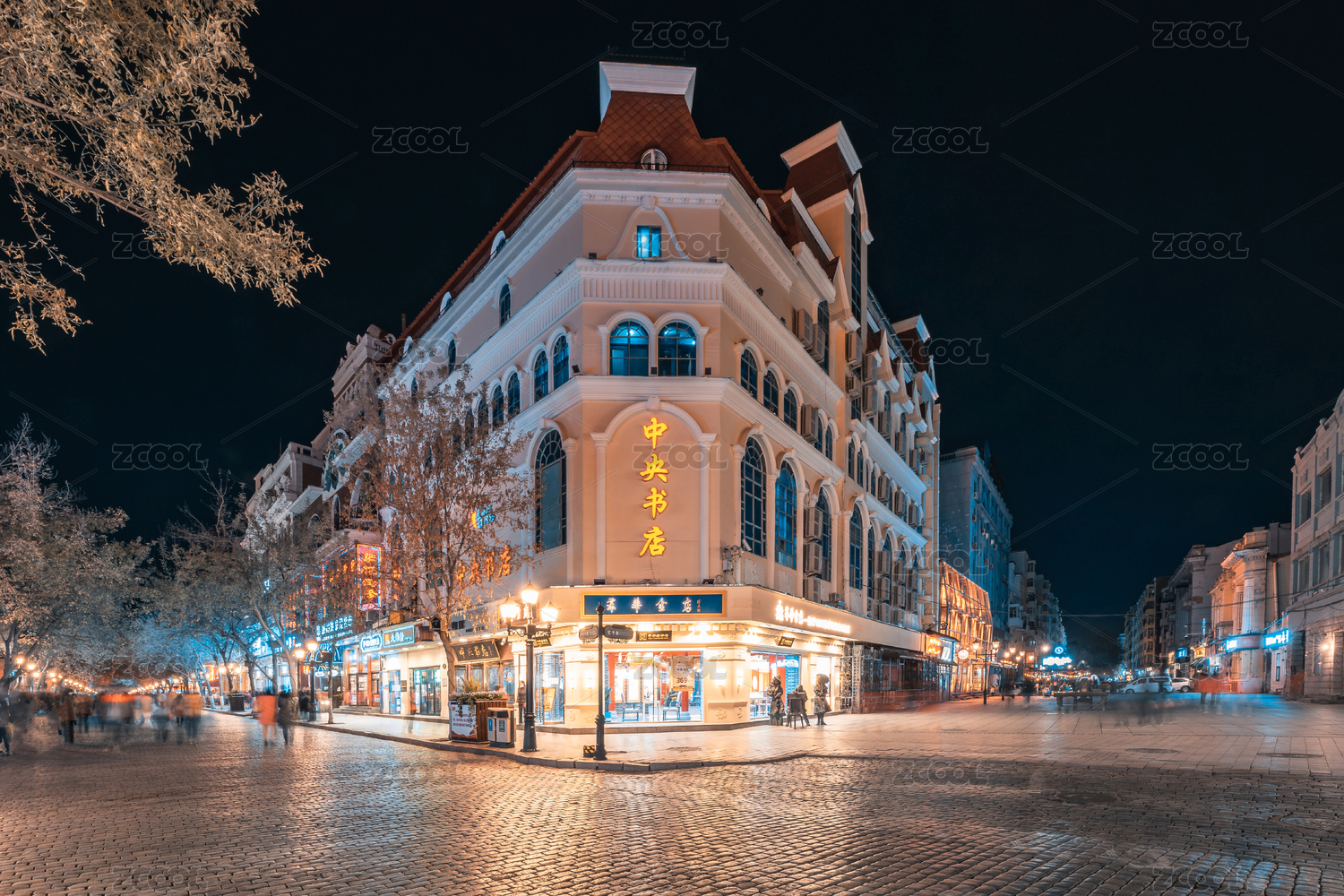 中国黑龙江省哈尔滨市中央大街夜景