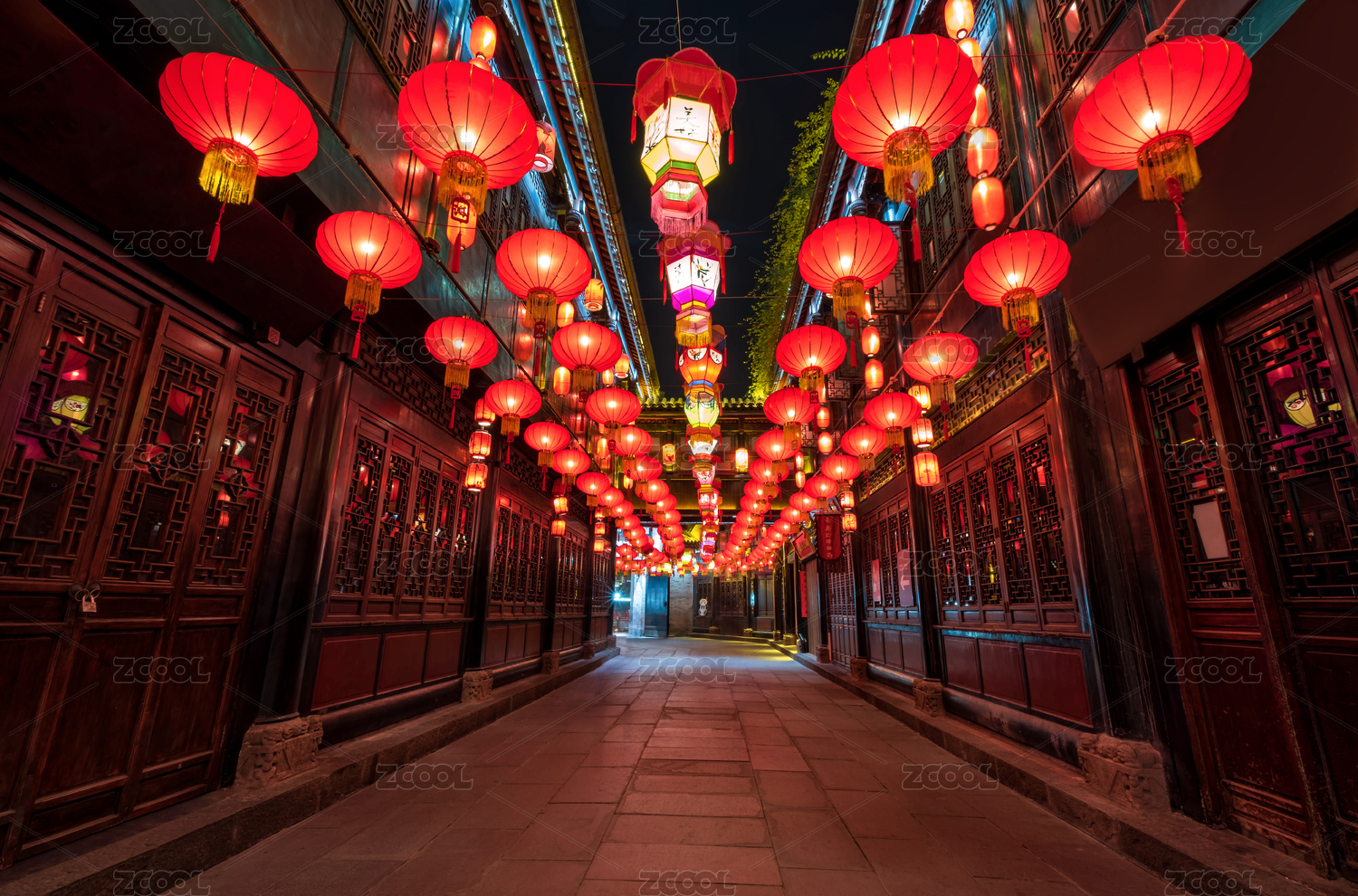 成都锦里古街红灯笼无人夜景城市风光