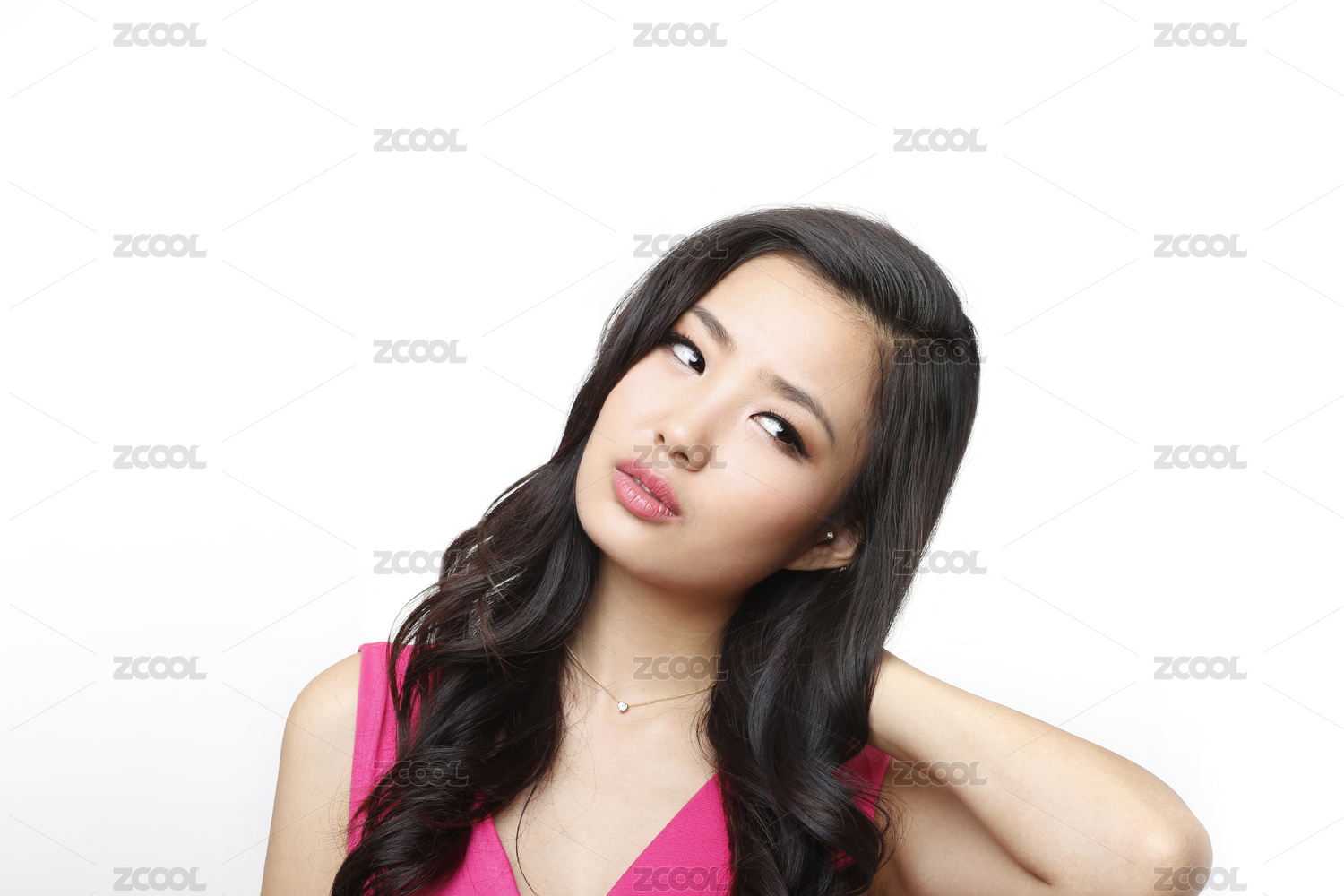 亚洲银行经理显示在白色背景上的房子和硬币双臂耸了耸肩肩膀。年轻的女孩在寻找有关于节能问题。
