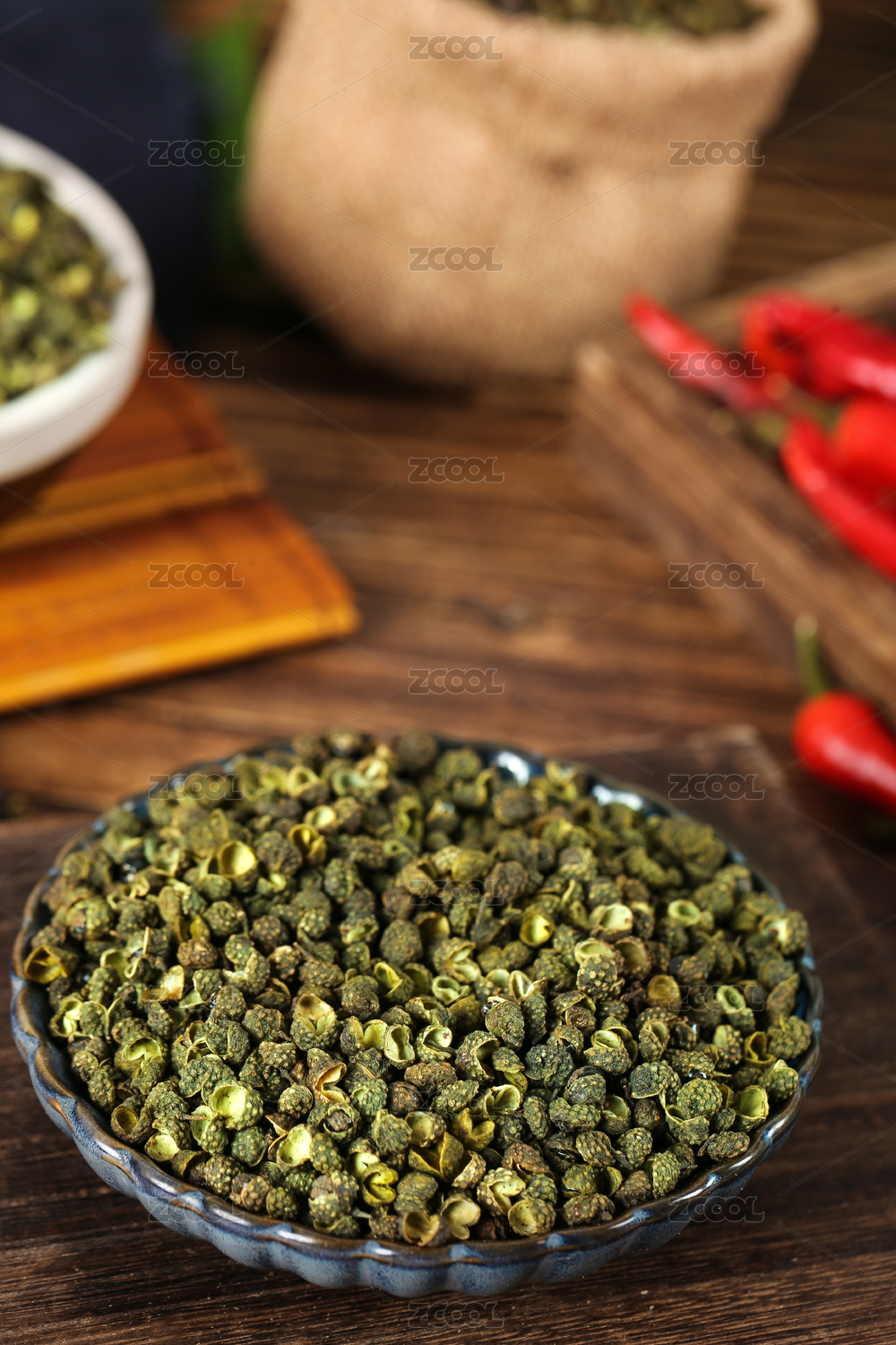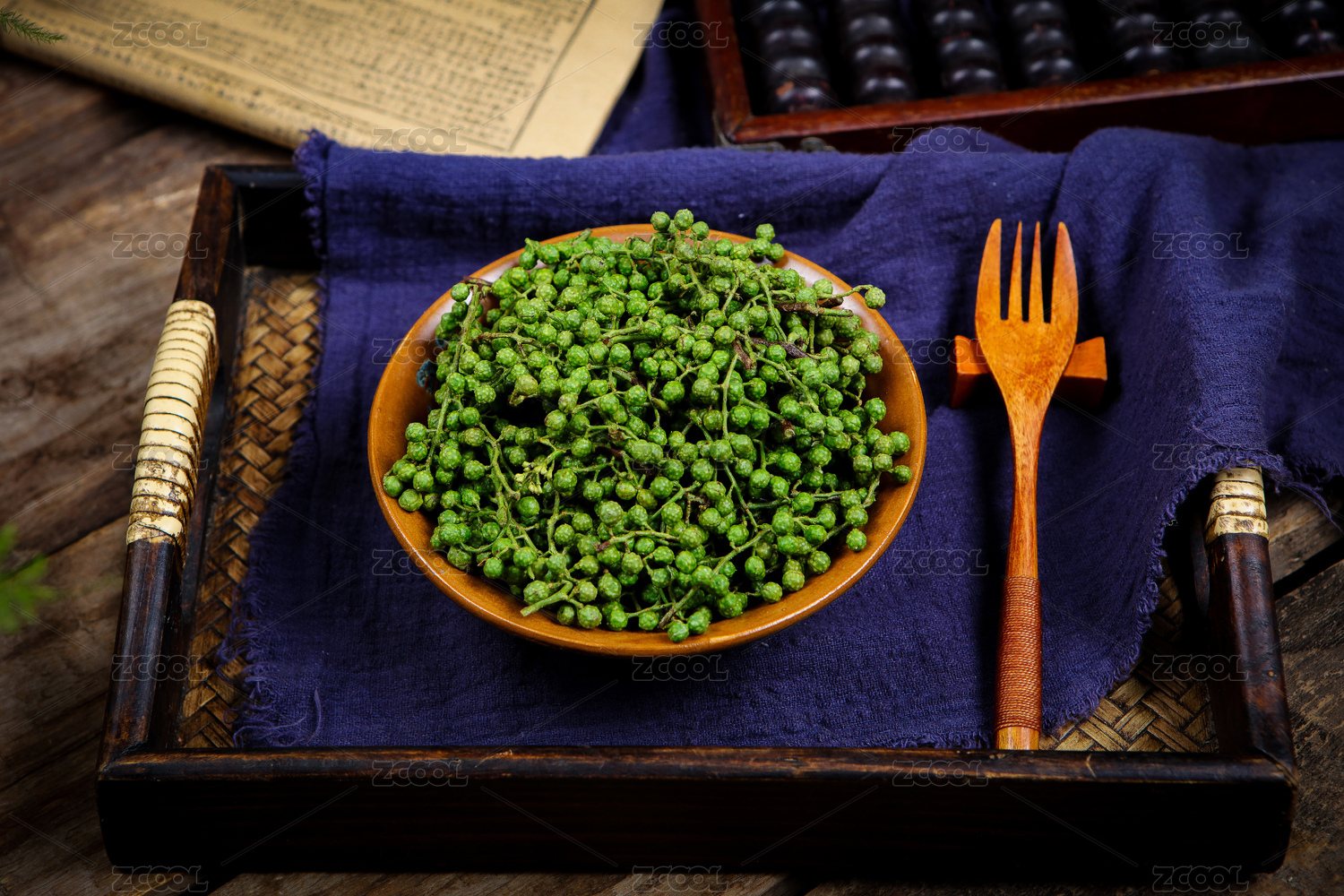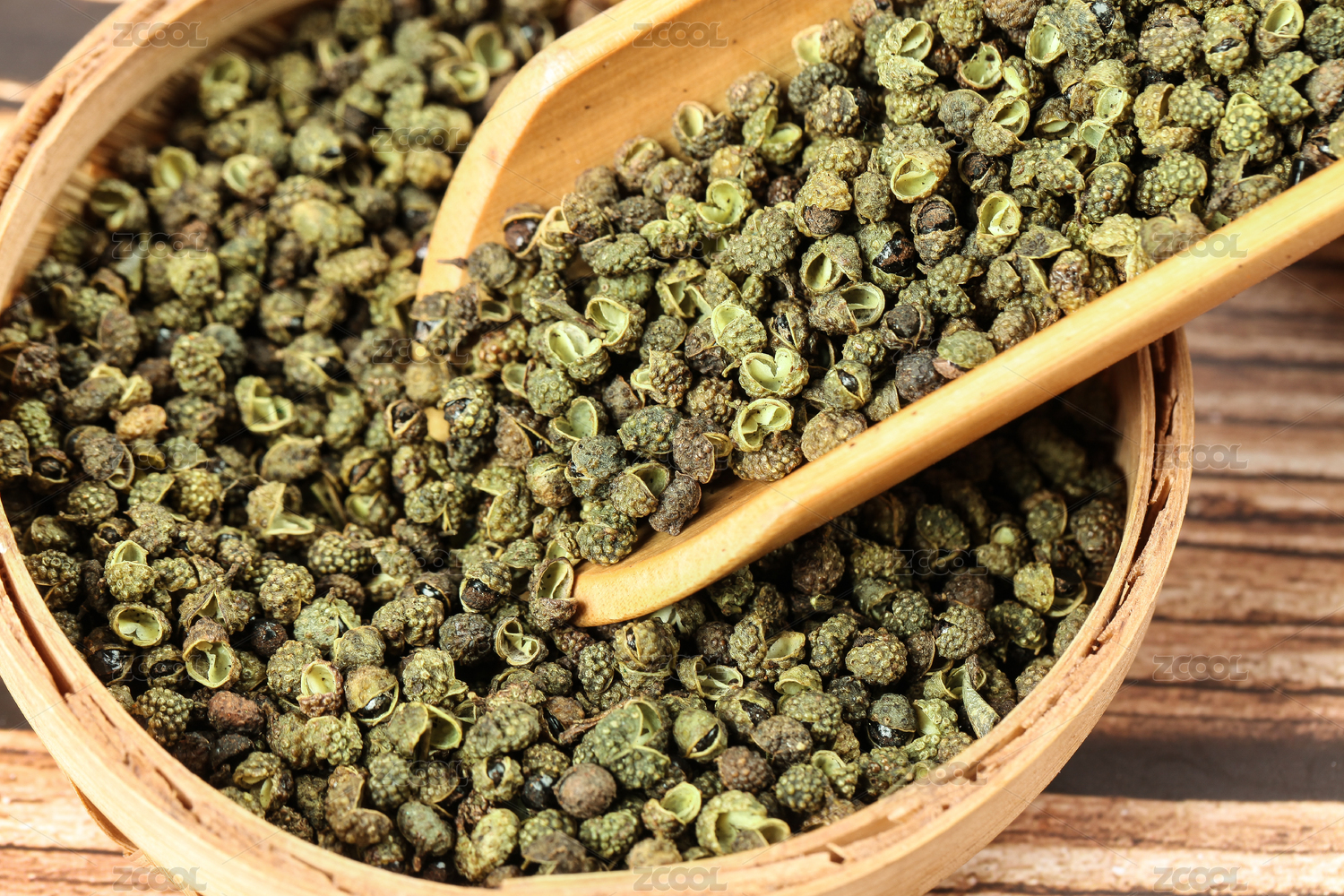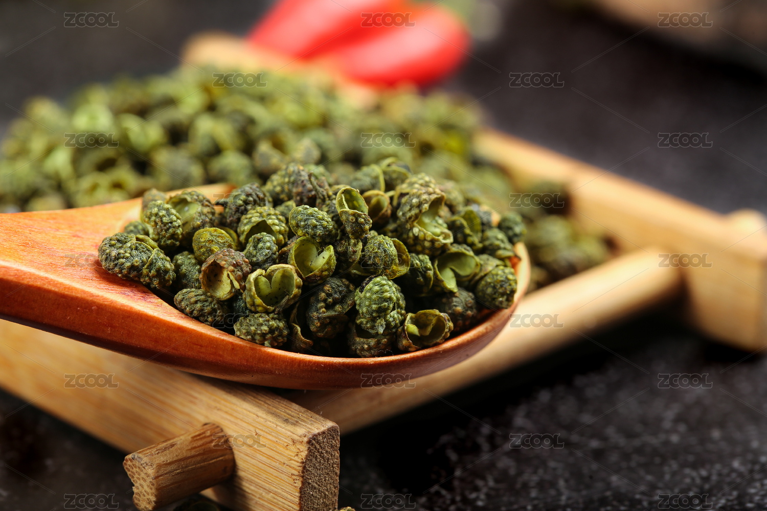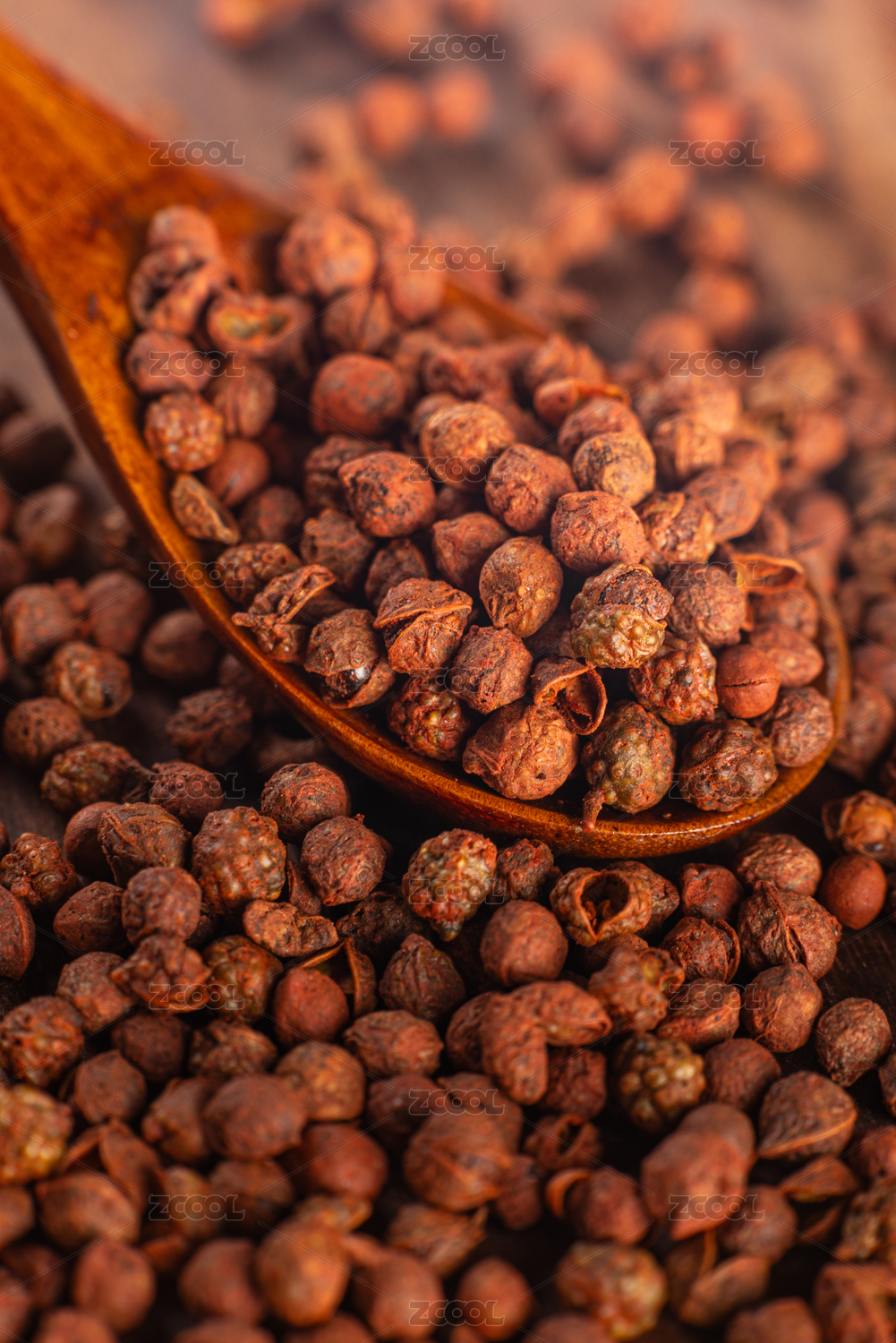 木垫上放着一堆江津麻椒和勺子挖着干麻椒