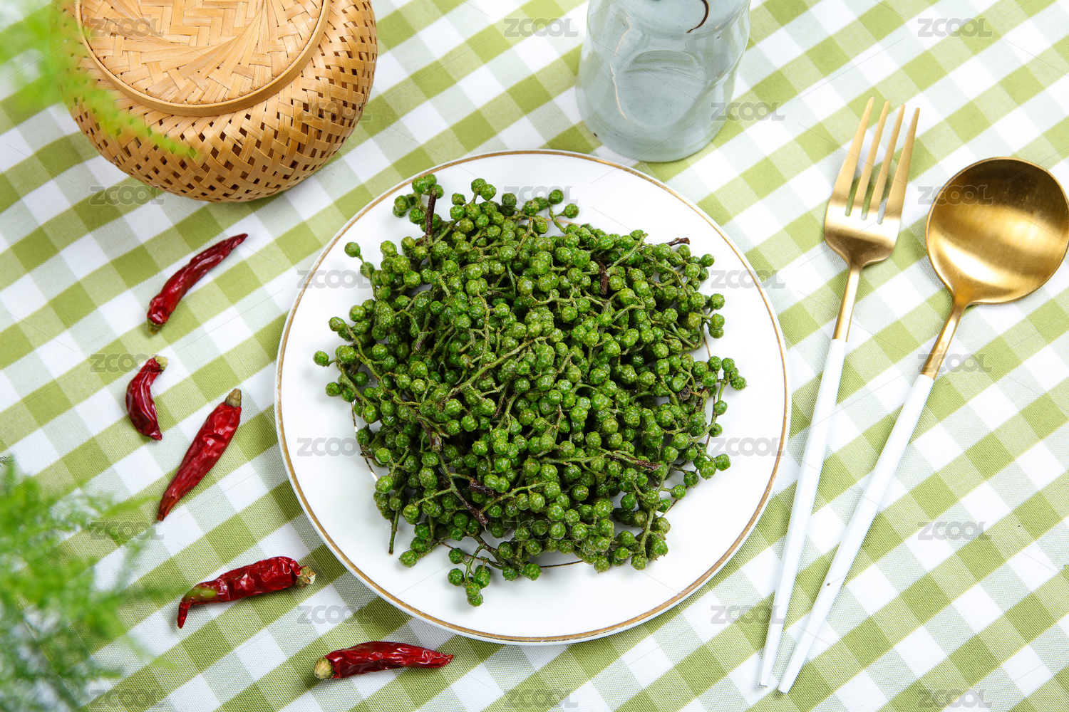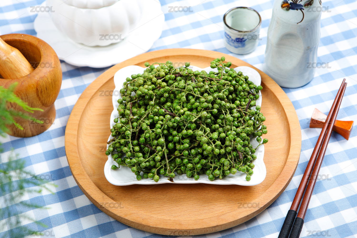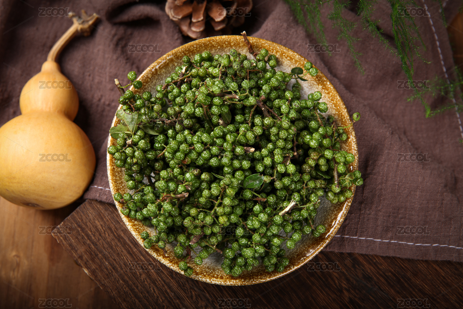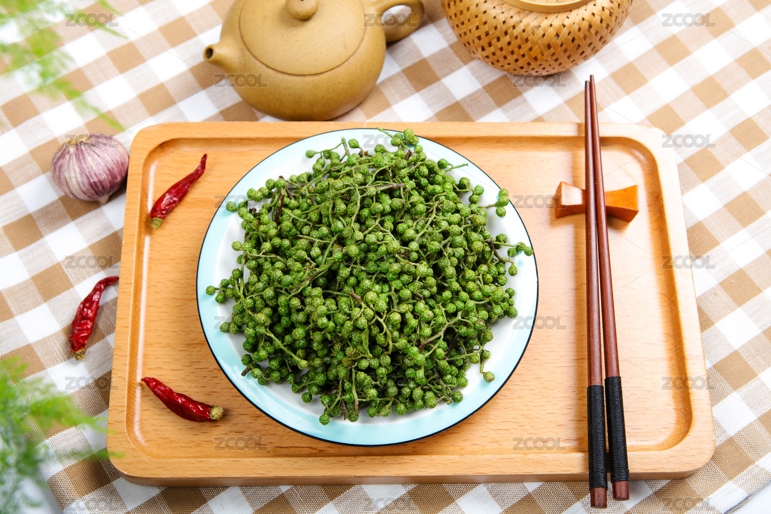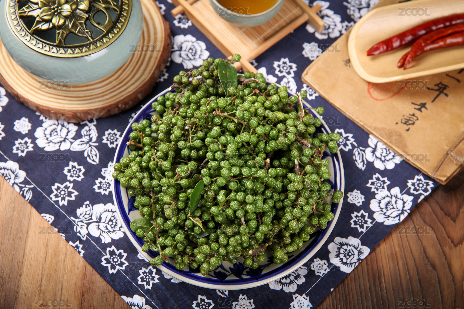 木垫上放着一堆江津麻椒和勺子挖着干麻椒