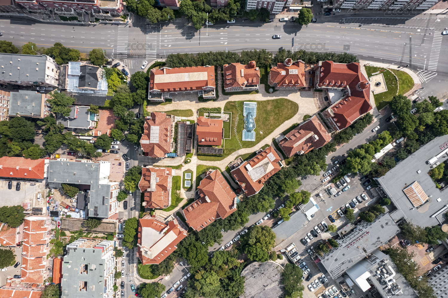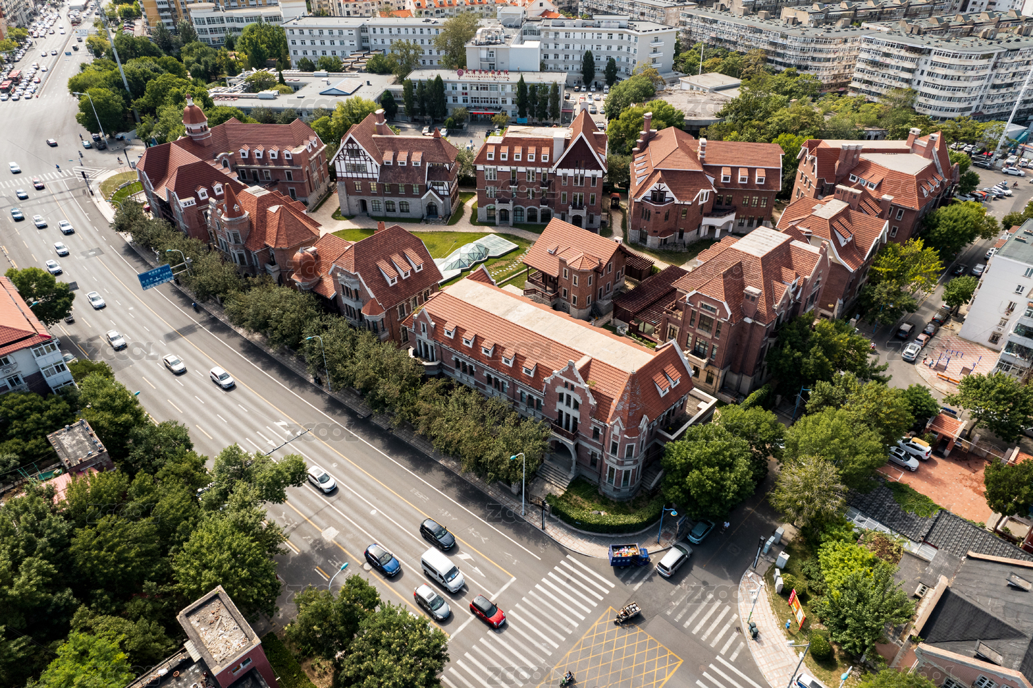 天津欧式城市地标风格建筑航拍