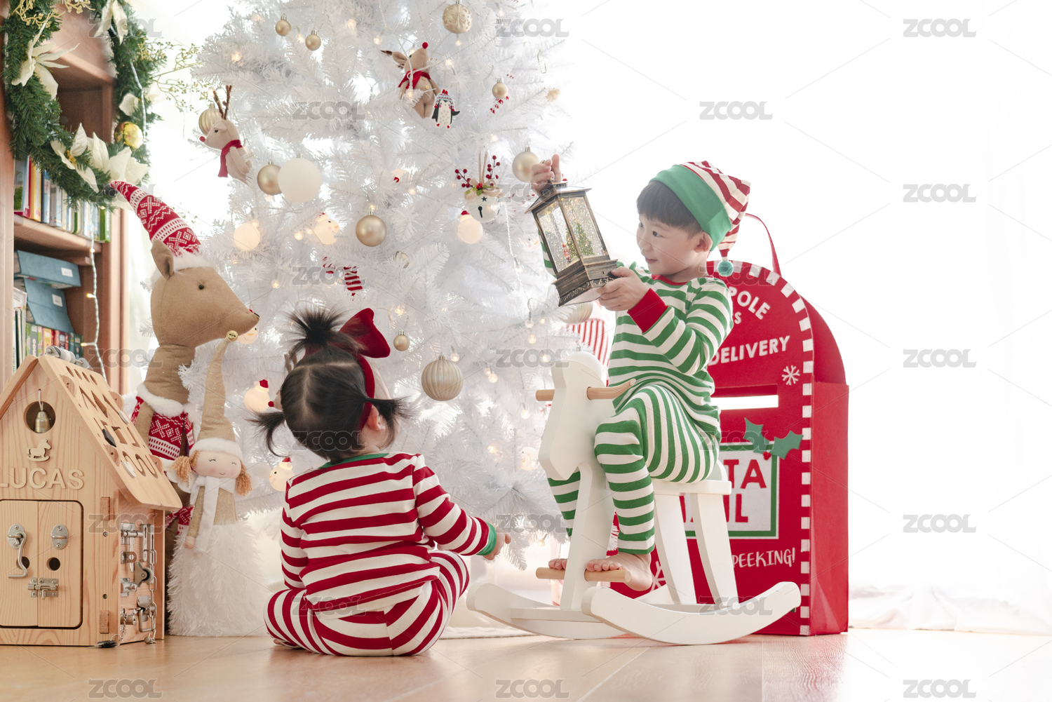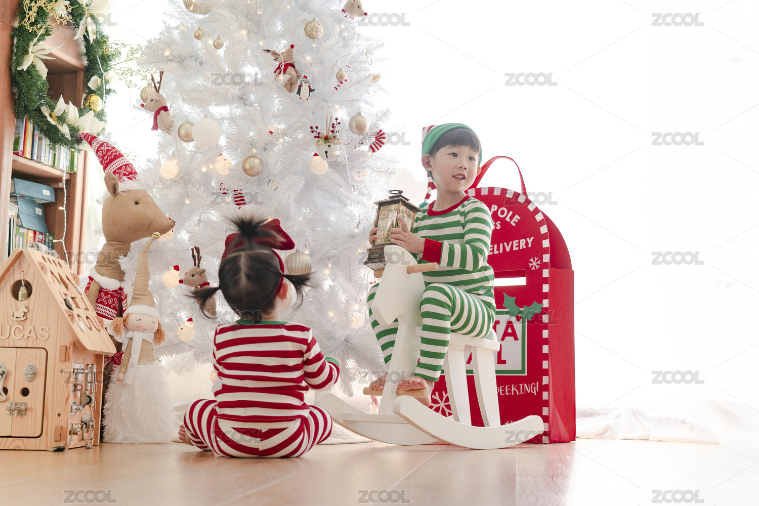 圣诞节里快乐的小哥哥小妹妹
