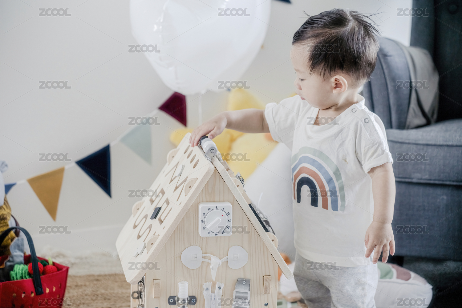男婴与忙碌板智慧屋