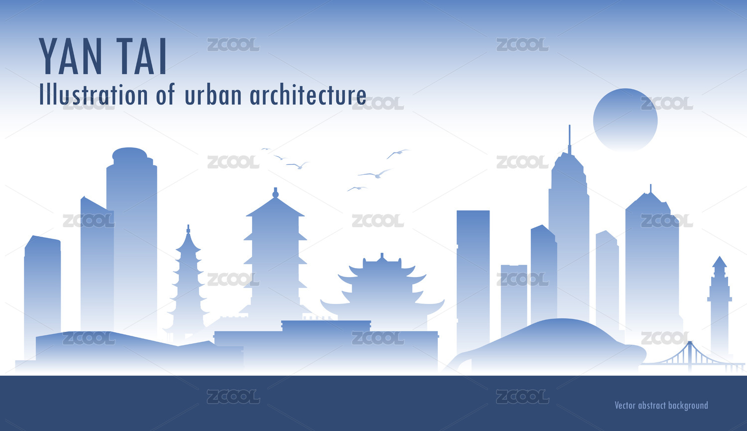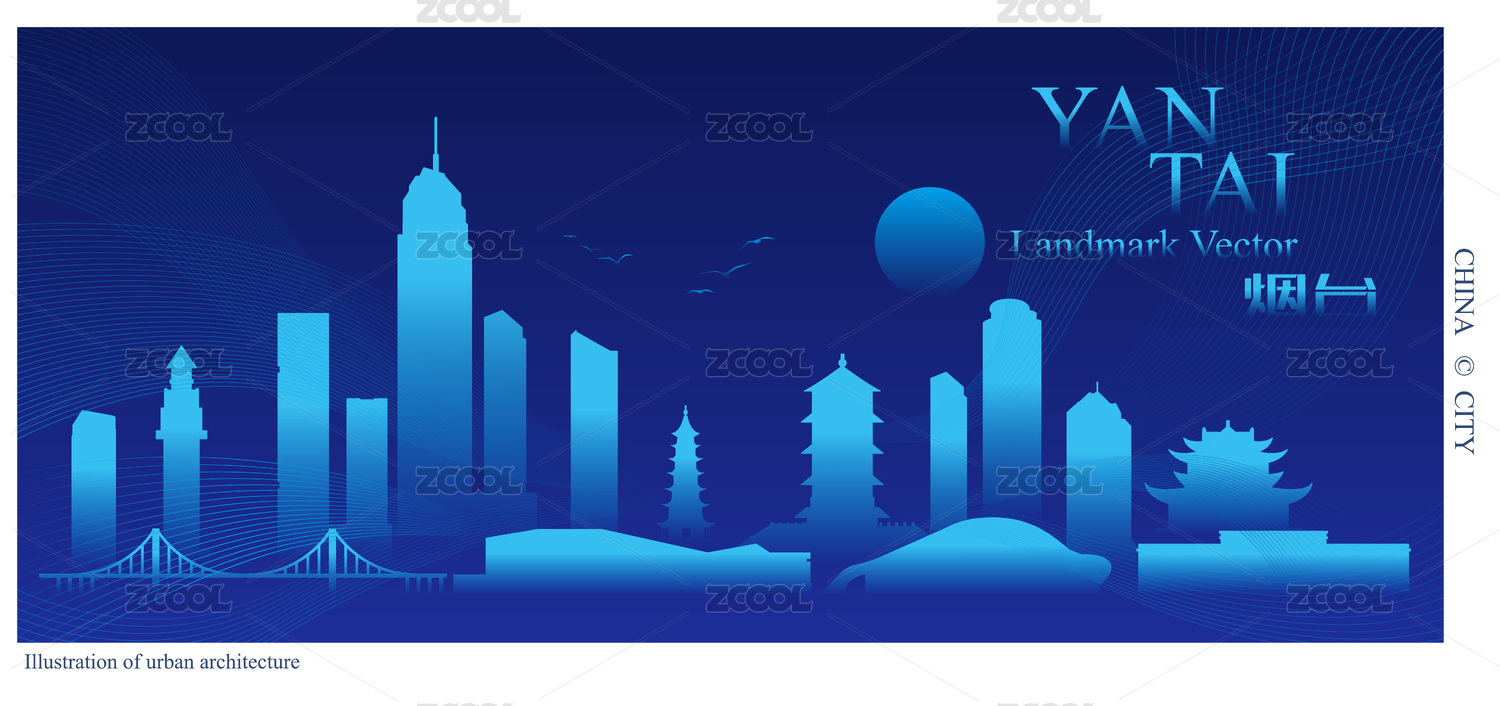 烟台城市地标建筑矢量背景插画