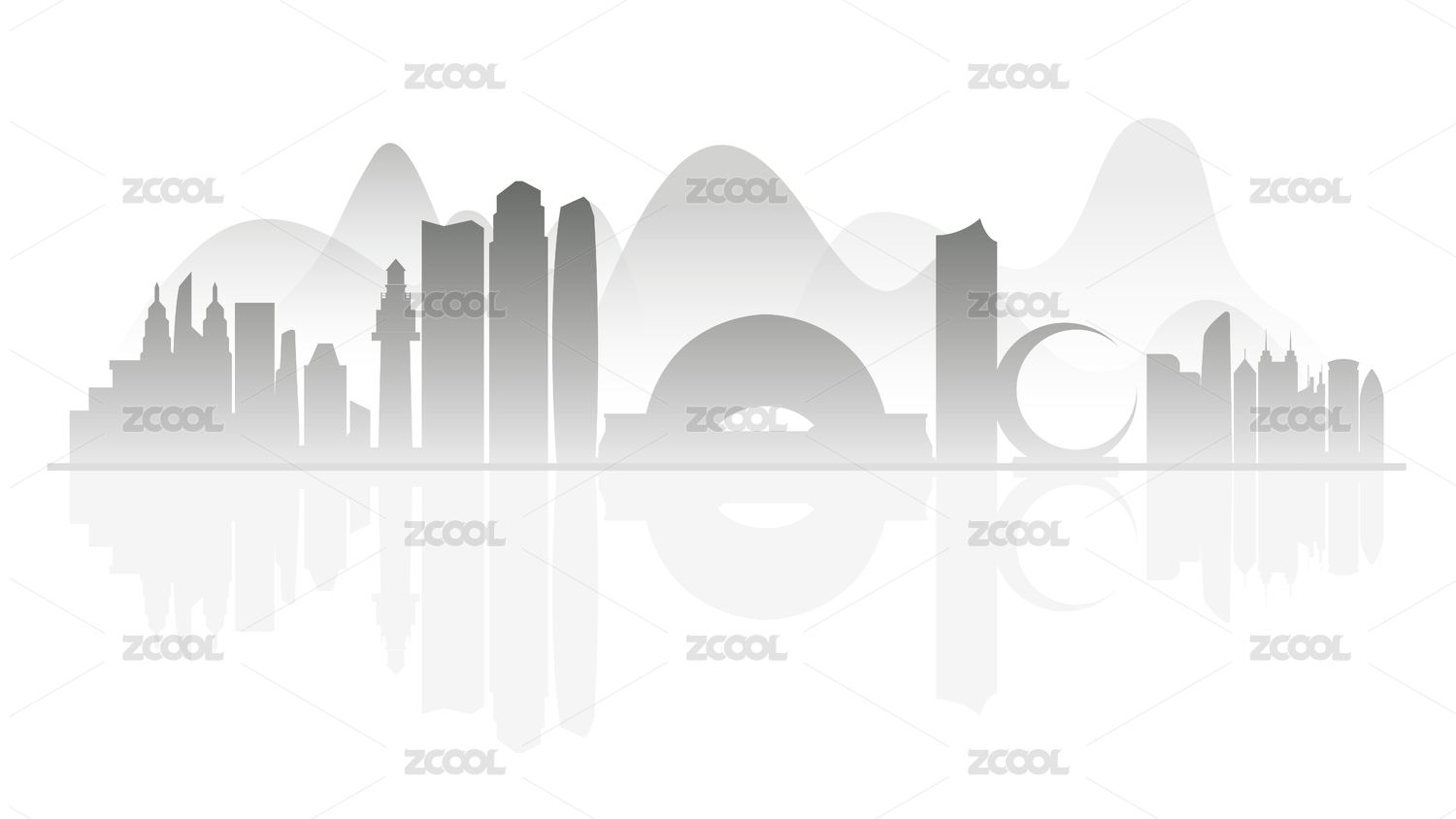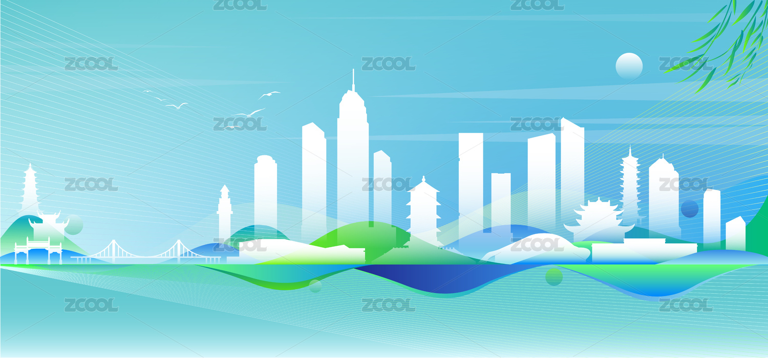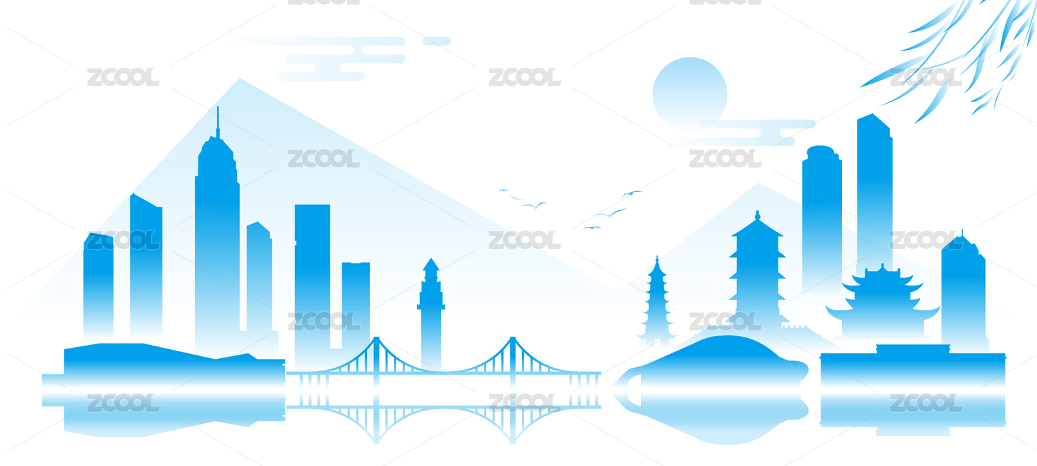 烟台水墨剪影插画
