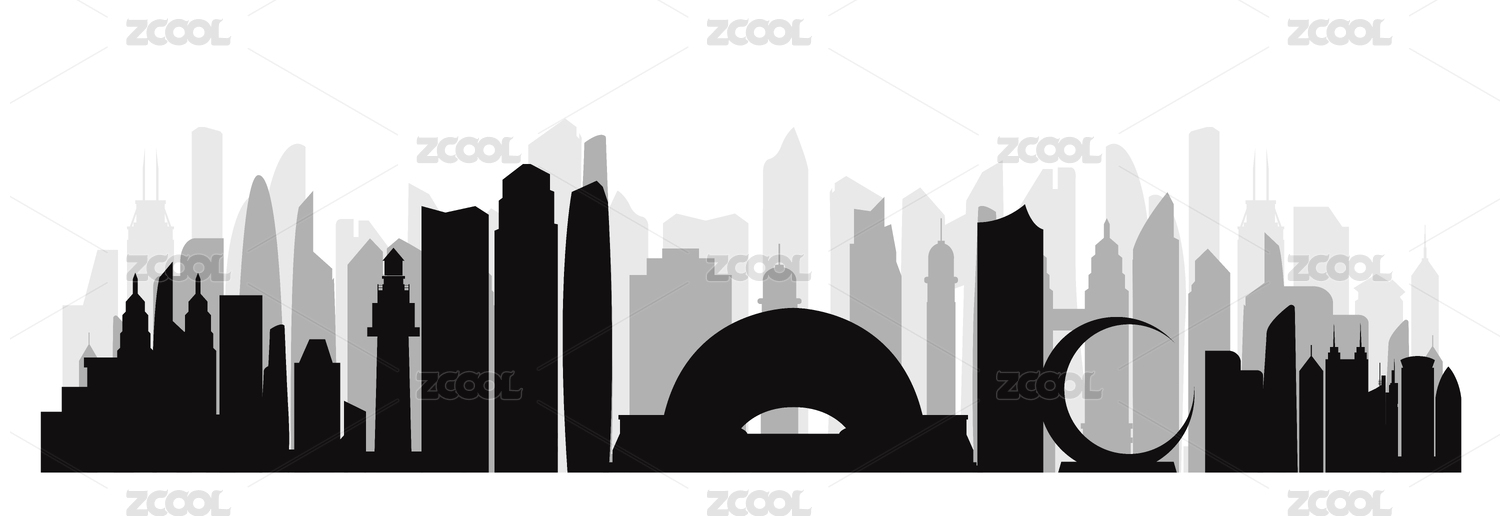 烟台城市手绘建筑剪影