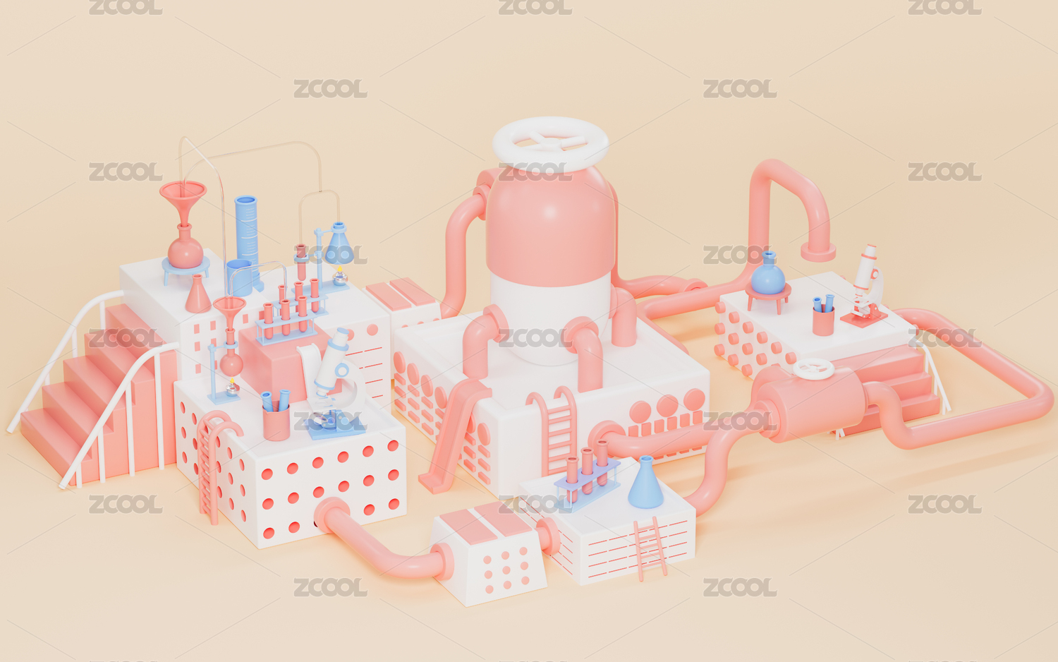 矢量卡通涂鸦生物实验室试管烧杯器材元素