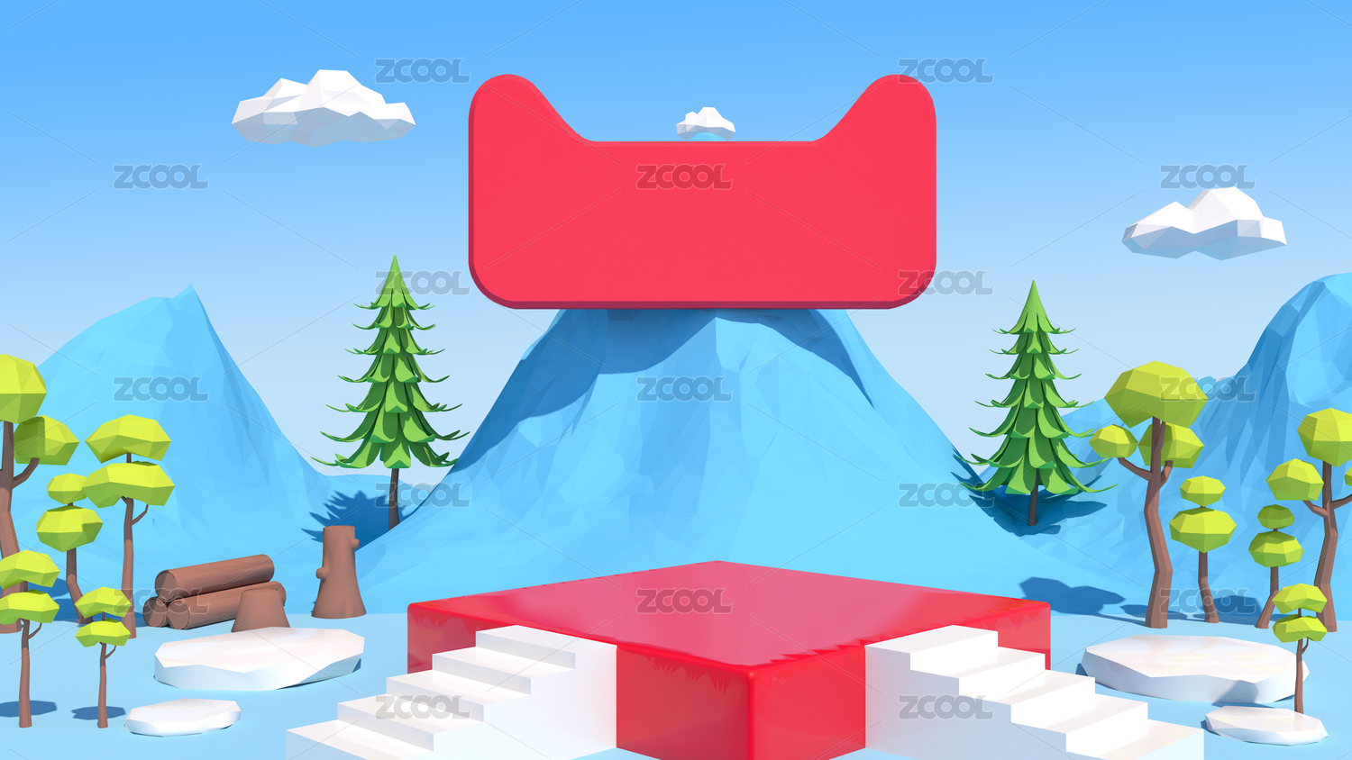 低多边形风格3D冰火度假小岛之夏日沙滩
