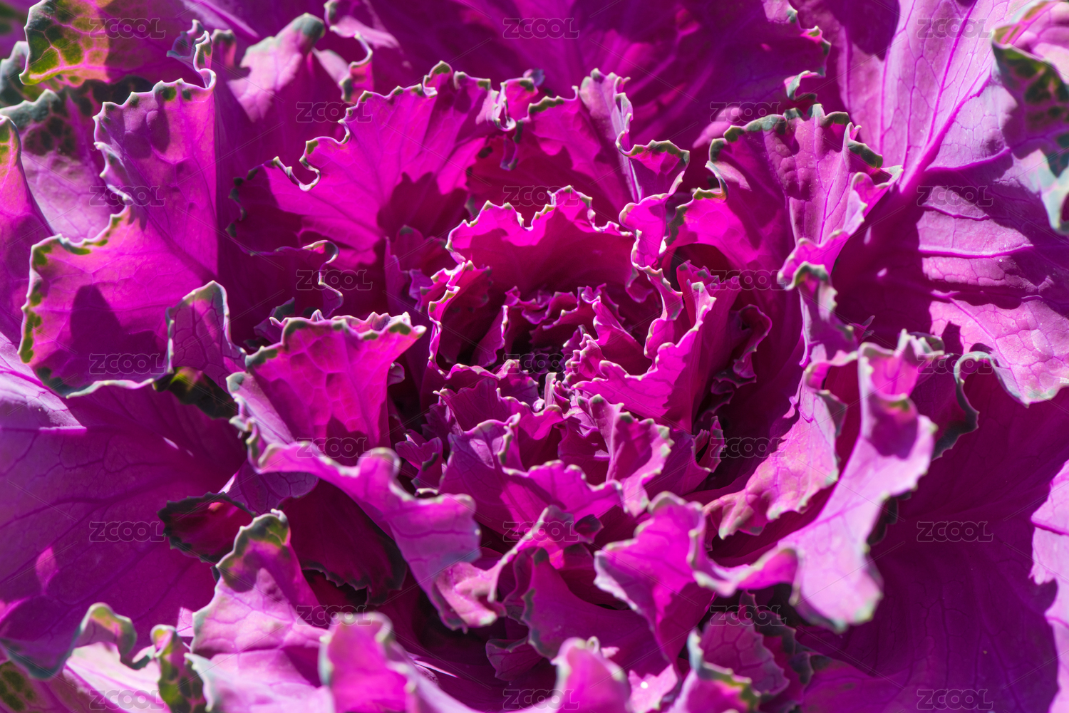 生长在种植园里的粉色羽衣甘蓝叶子特写