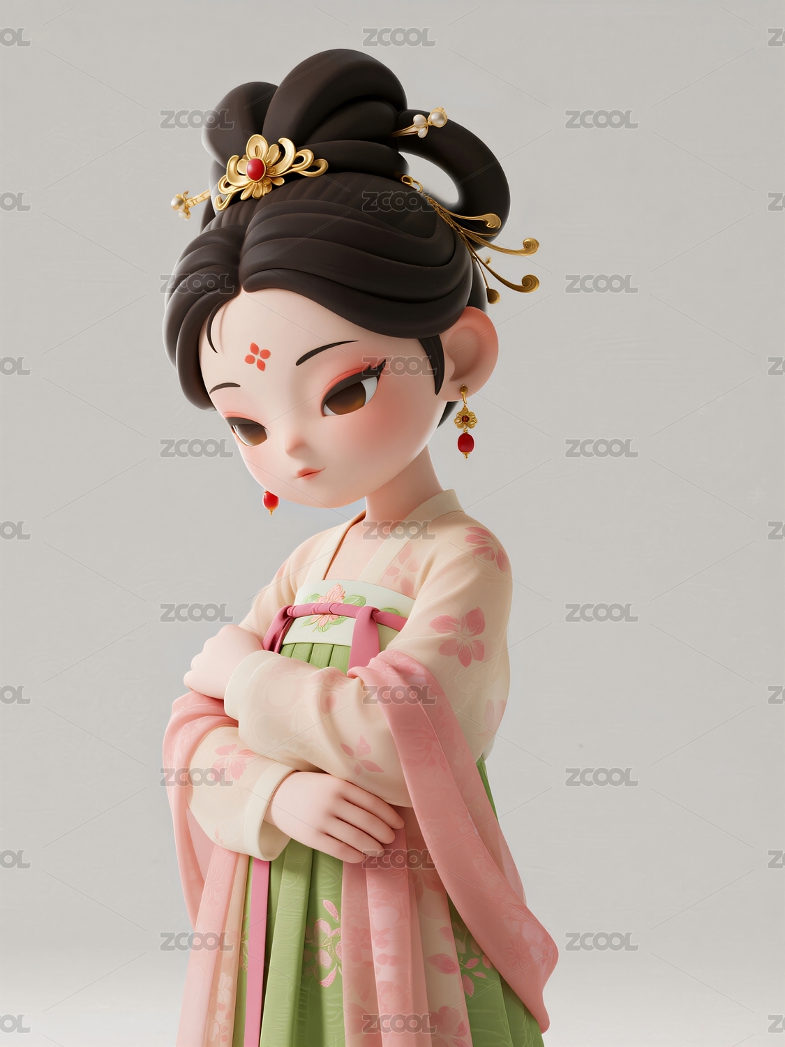 一位美丽的亚裔女孩双手环抱胸前侧身看向镜头