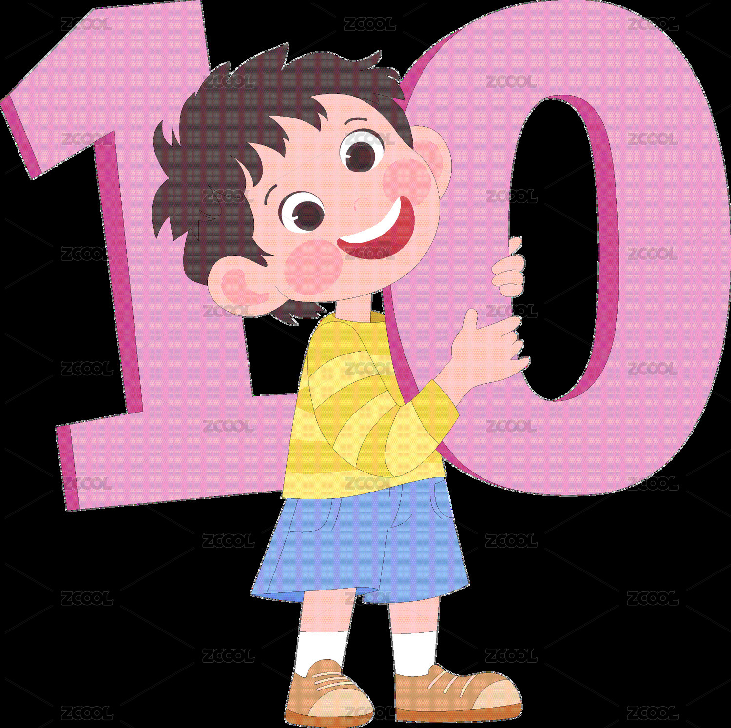 卡通风可爱数学课男孩抱着数字儿童教育插画