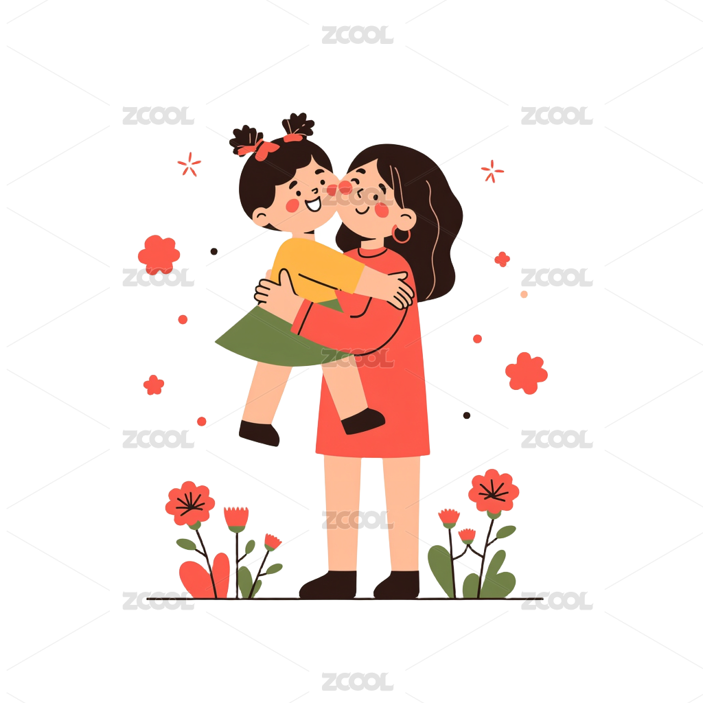 母亲节慈爱的妈妈拥抱女儿Png免抠素材扁平渐变风格