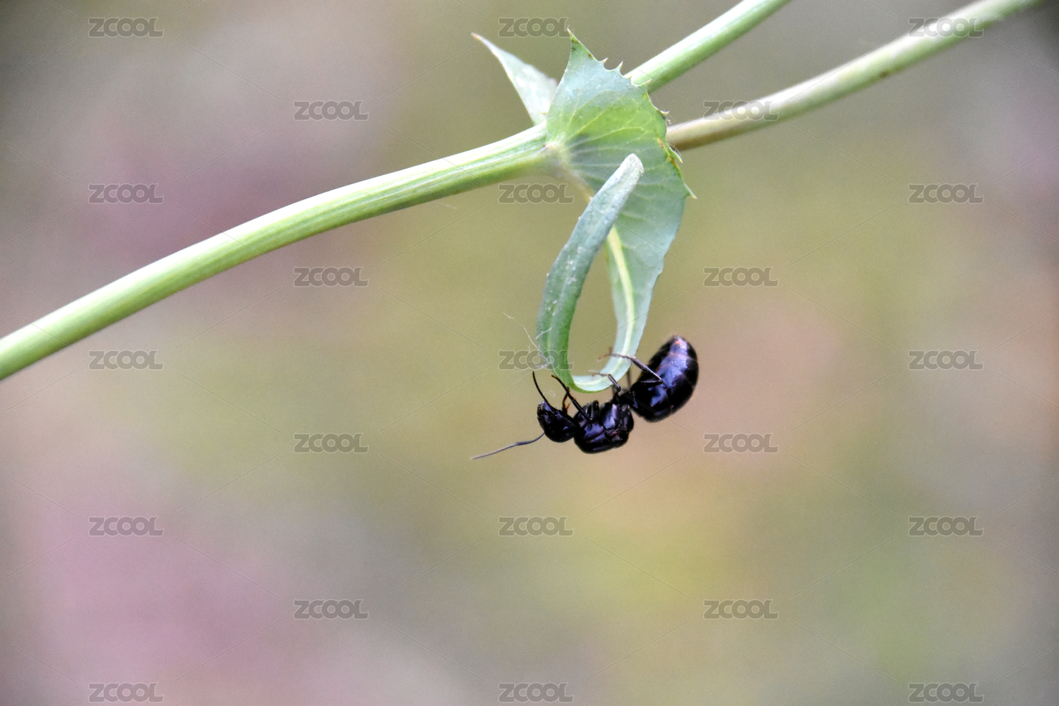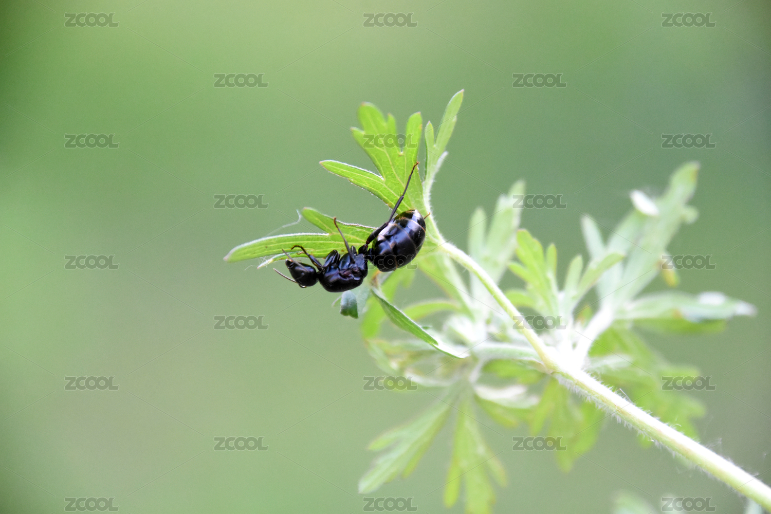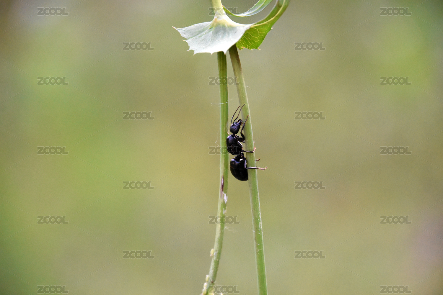 黑色蚂蚁爬行于植物表面