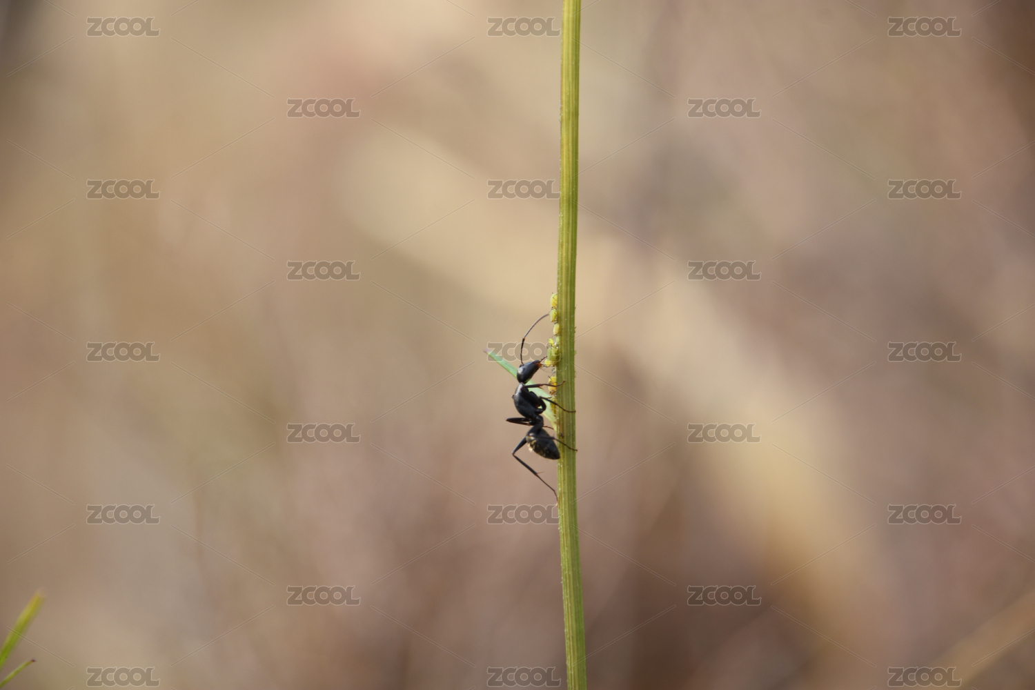 爬在绿色草杆上的黑色蚂蚁