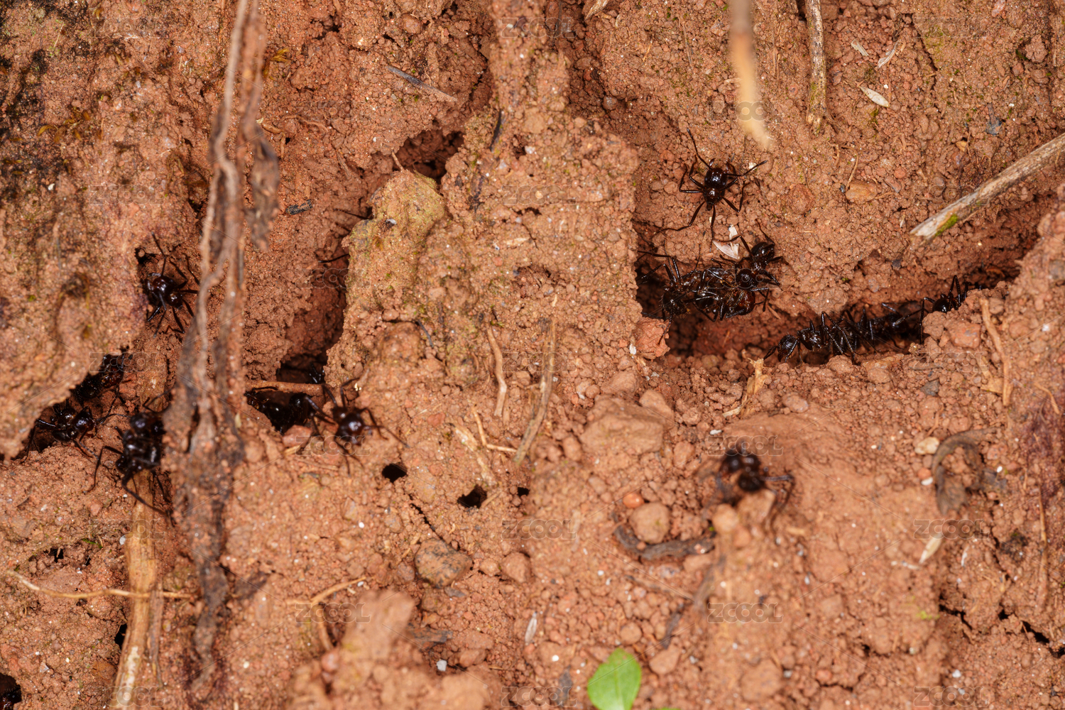 泥土中忙碌的黑色蚂蚁群