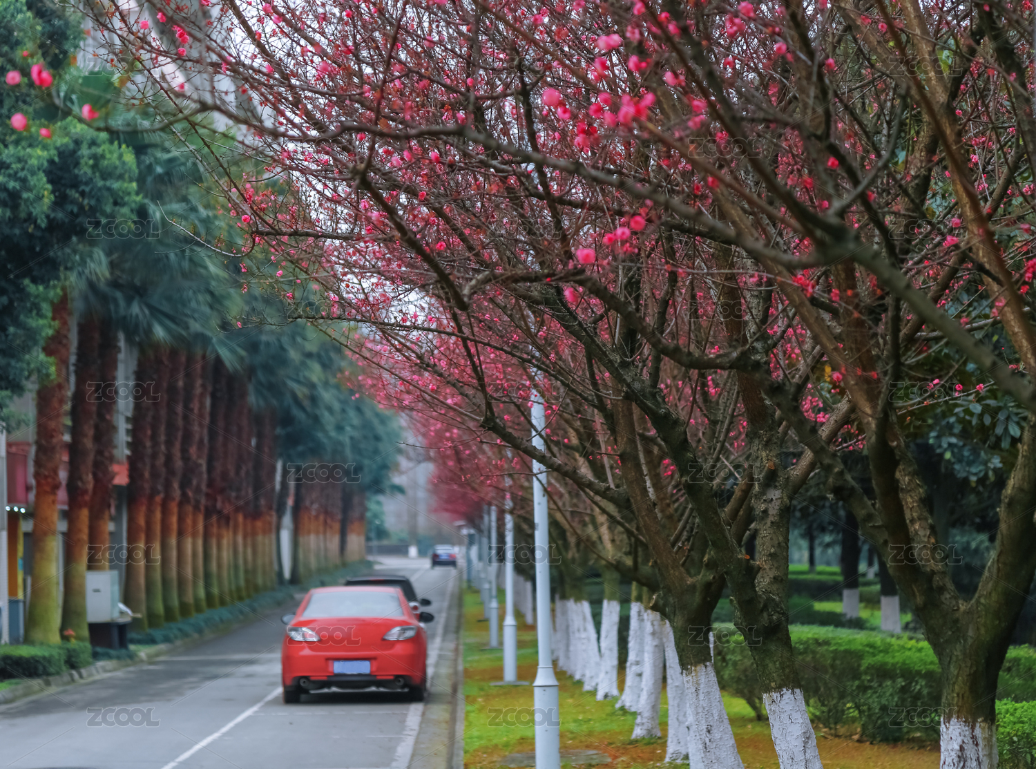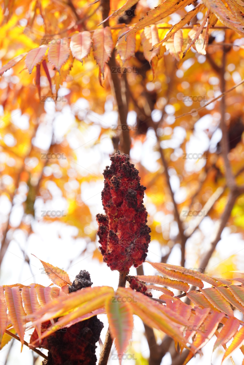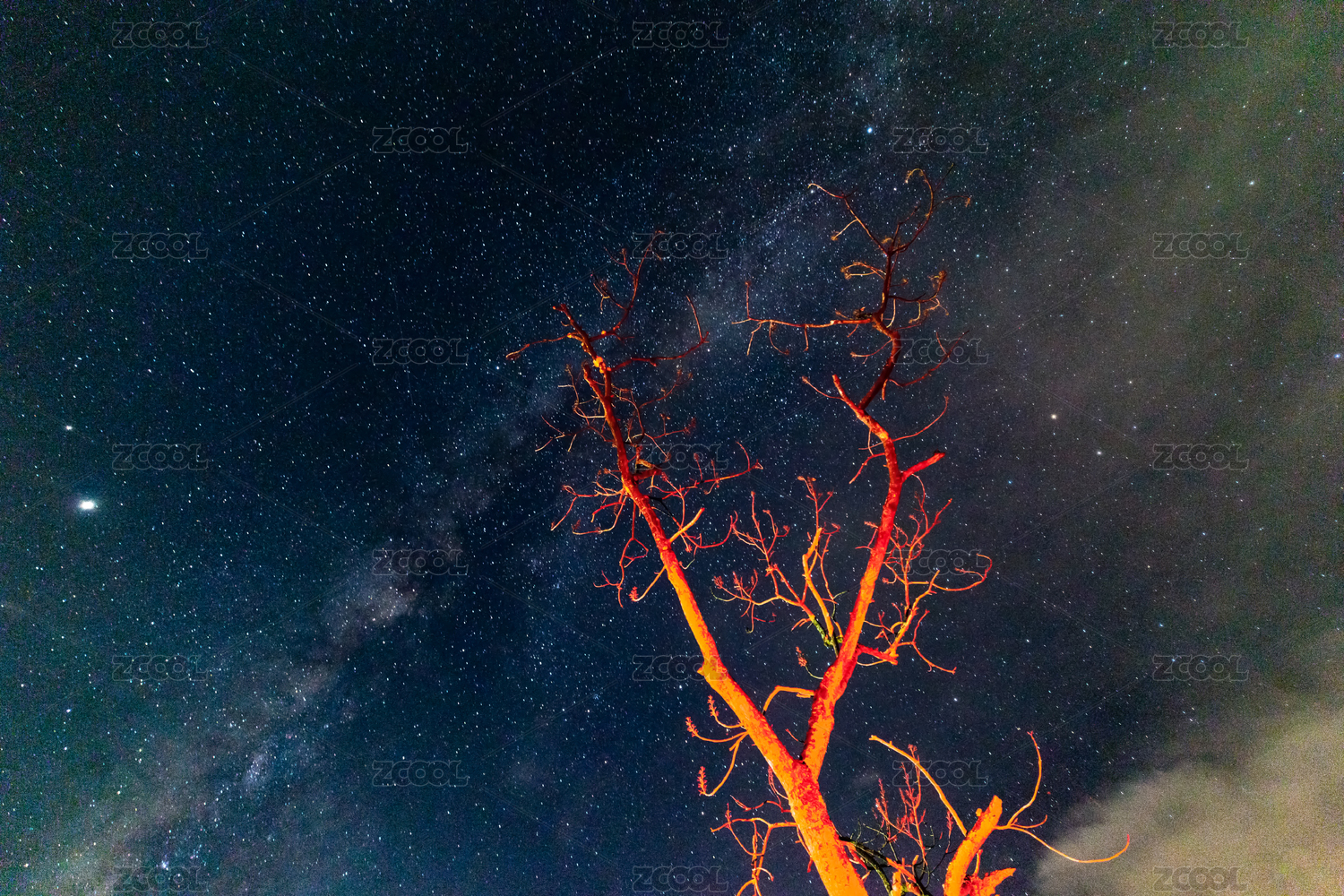 自然户外红色飘带丝带缠绕枯树树木树枝上