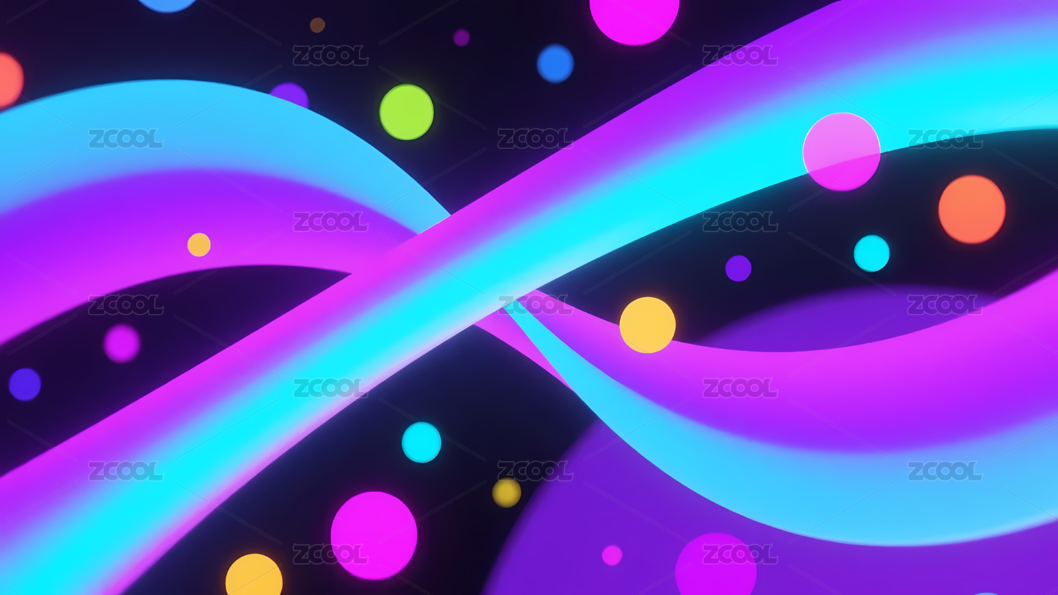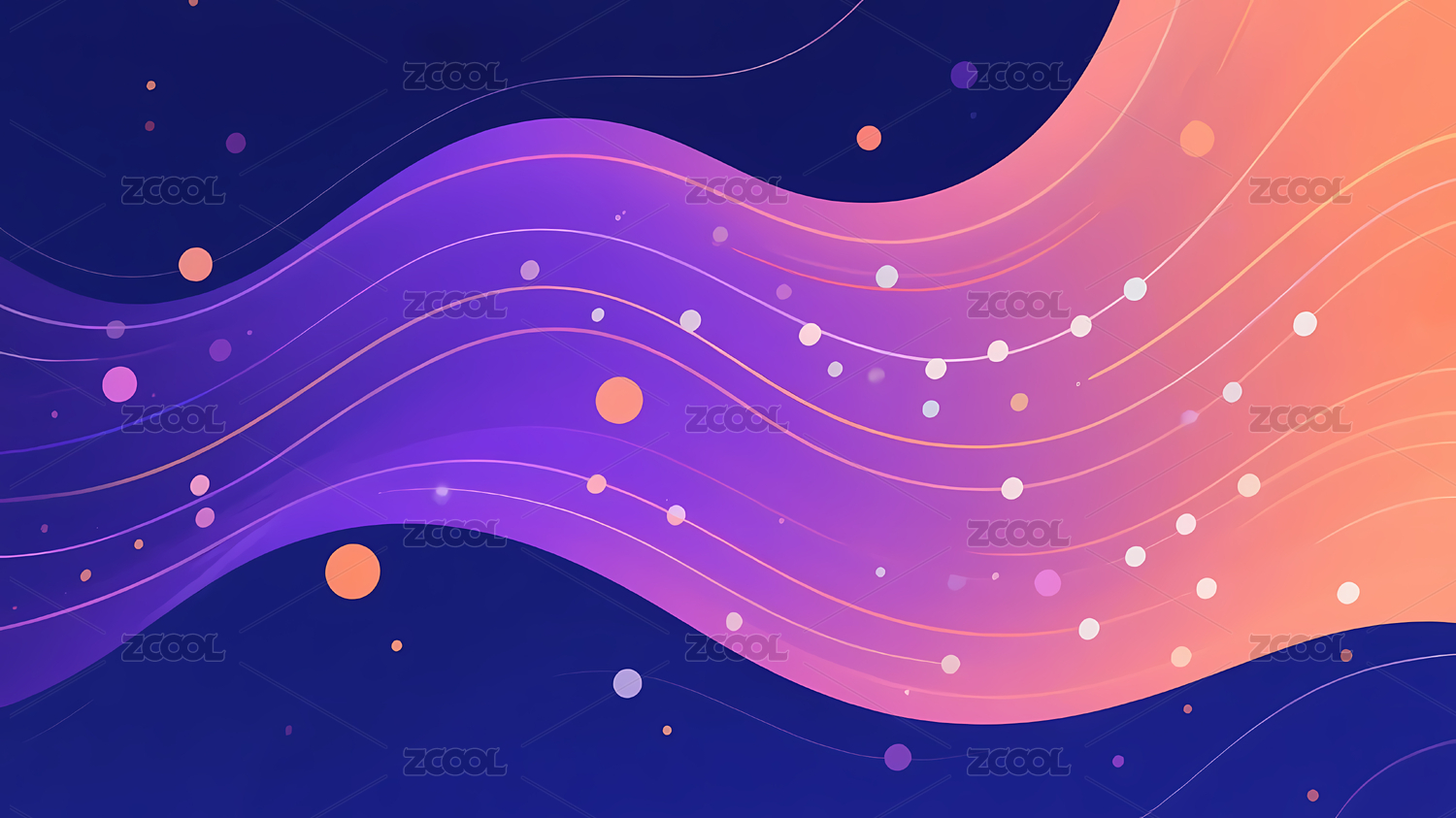蓝橙波浪线条与小圆点展现现代艺术效果