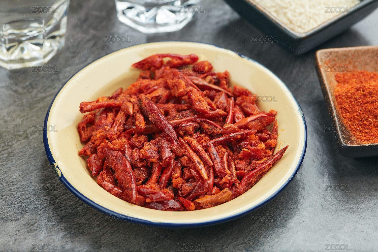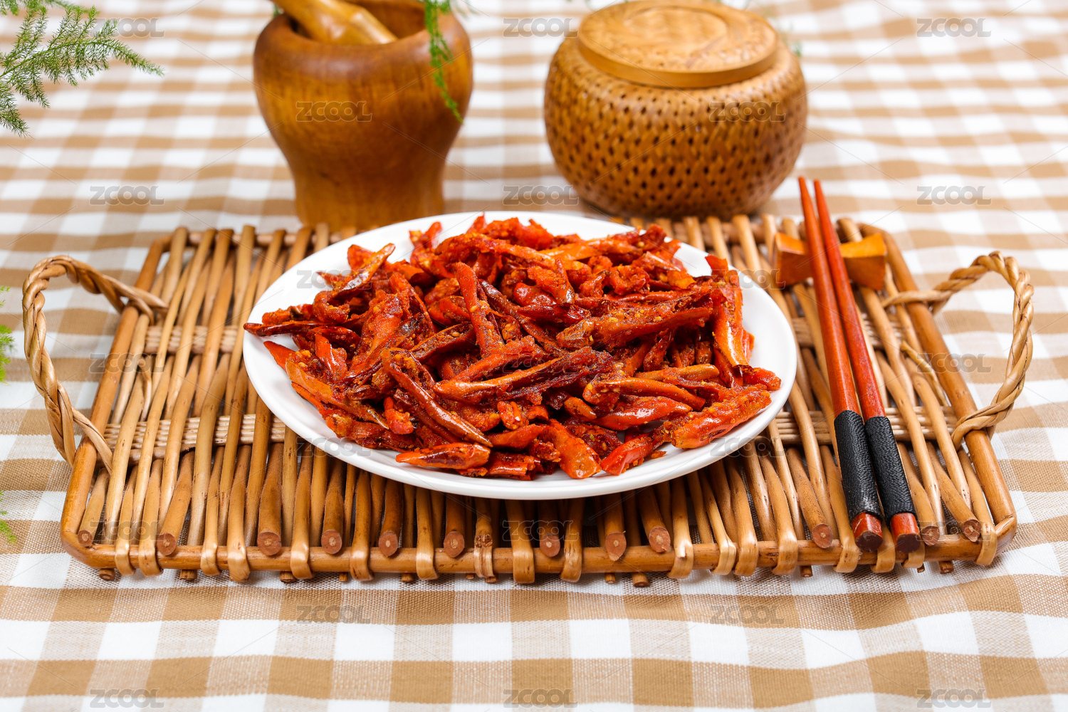 装在盘子里的重庆小吃香脆椒