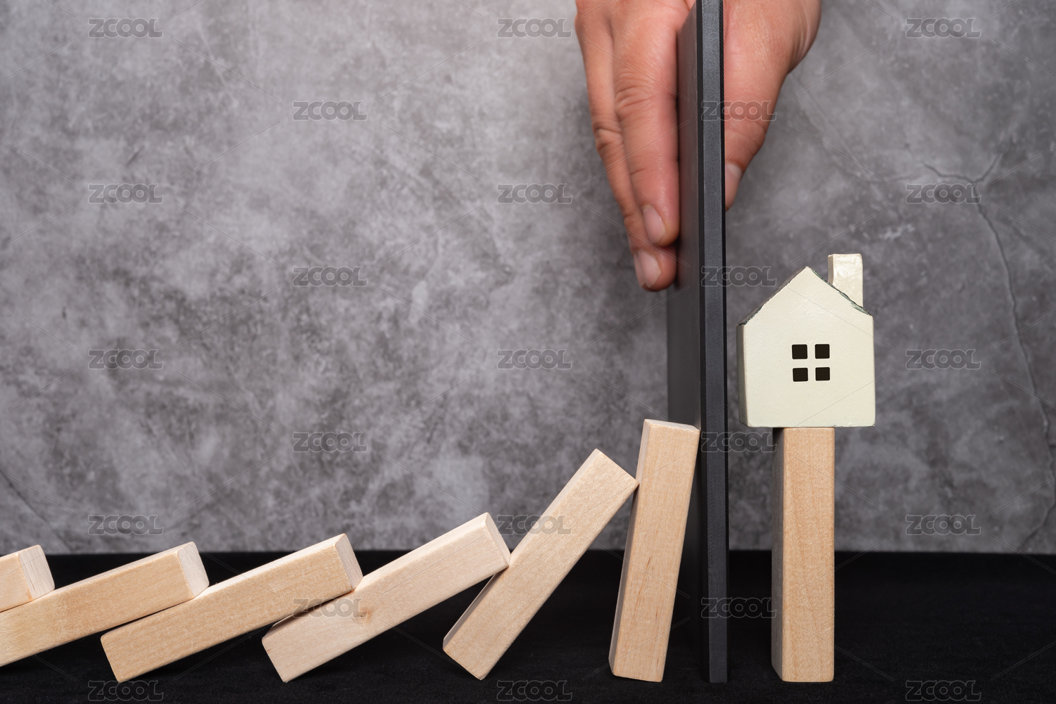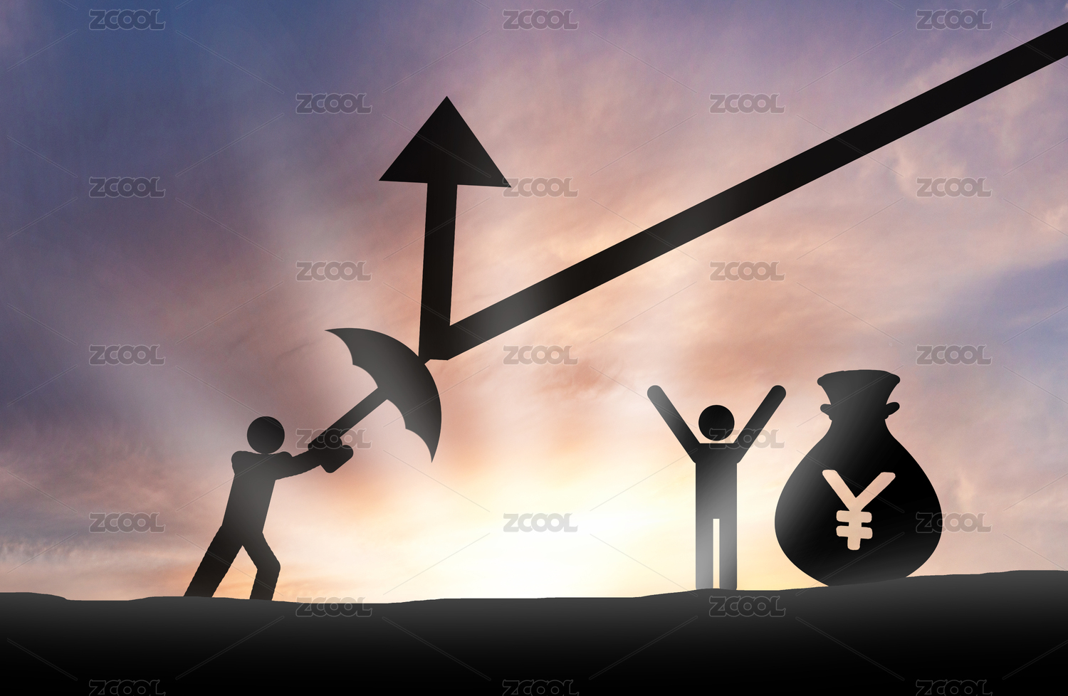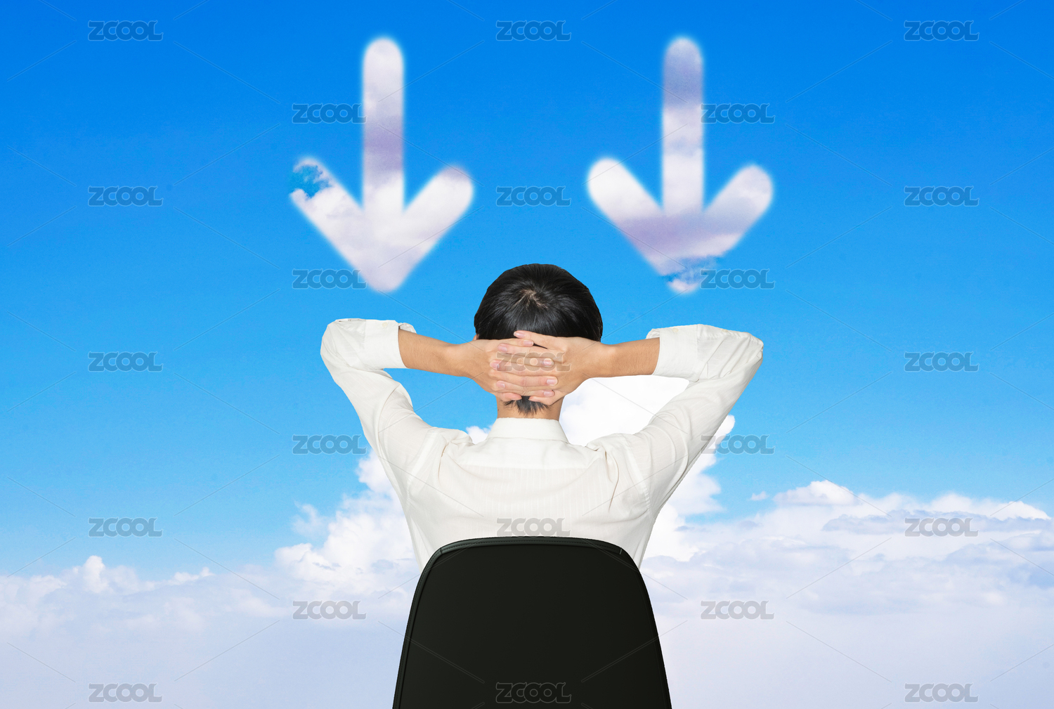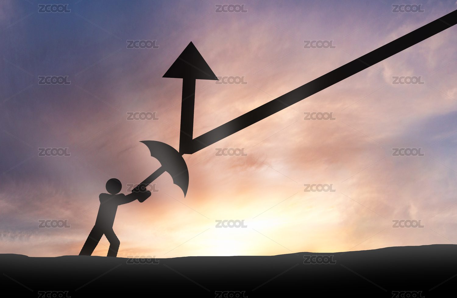 商业商务剪影小人面对下跌的趋势使用保护伞