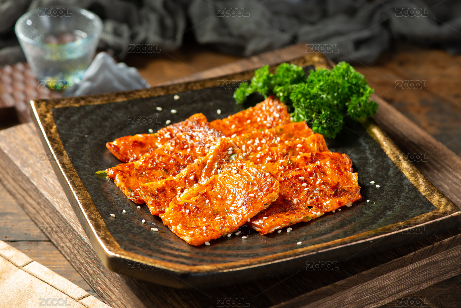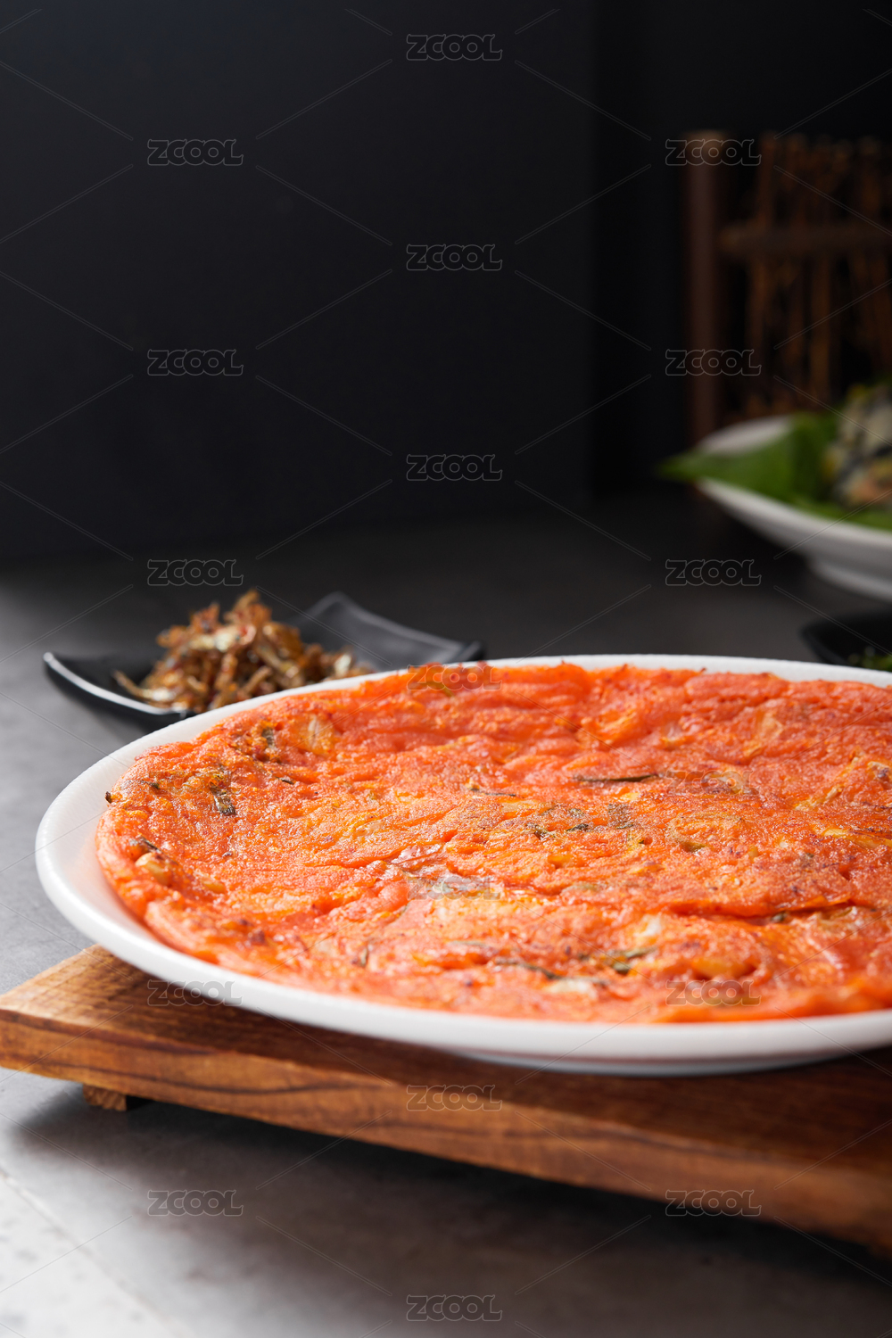 桌子上的一盘泡菜煎饼