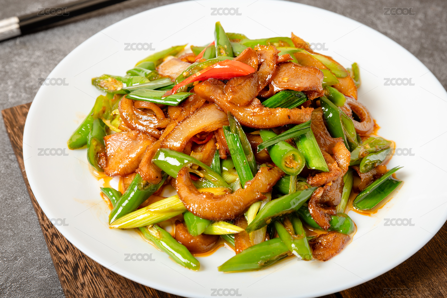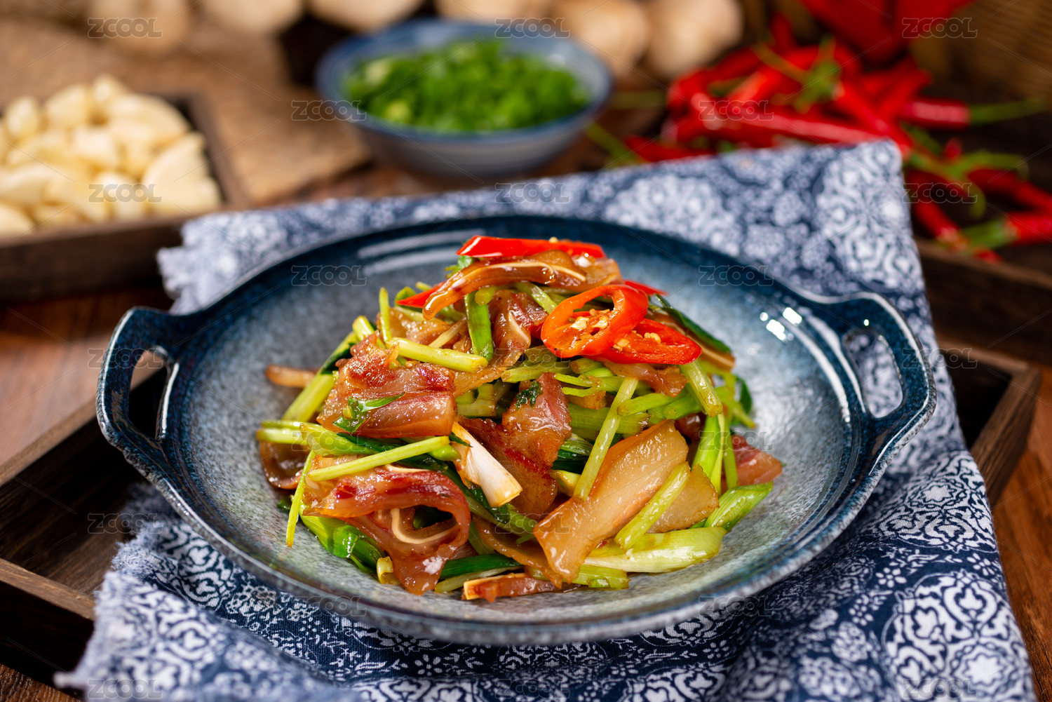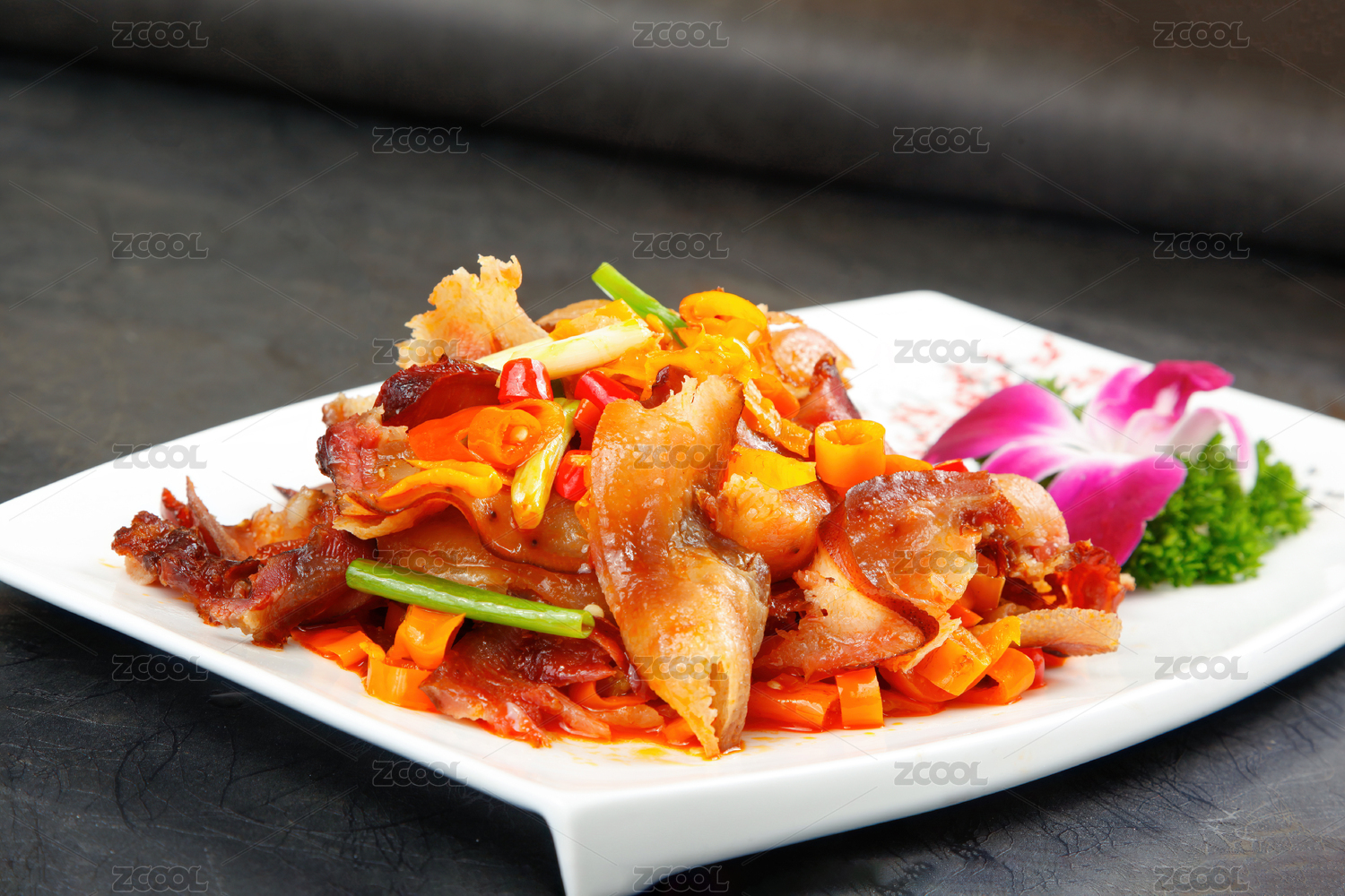 中国美食湘菜热菜小炒腊猪脸