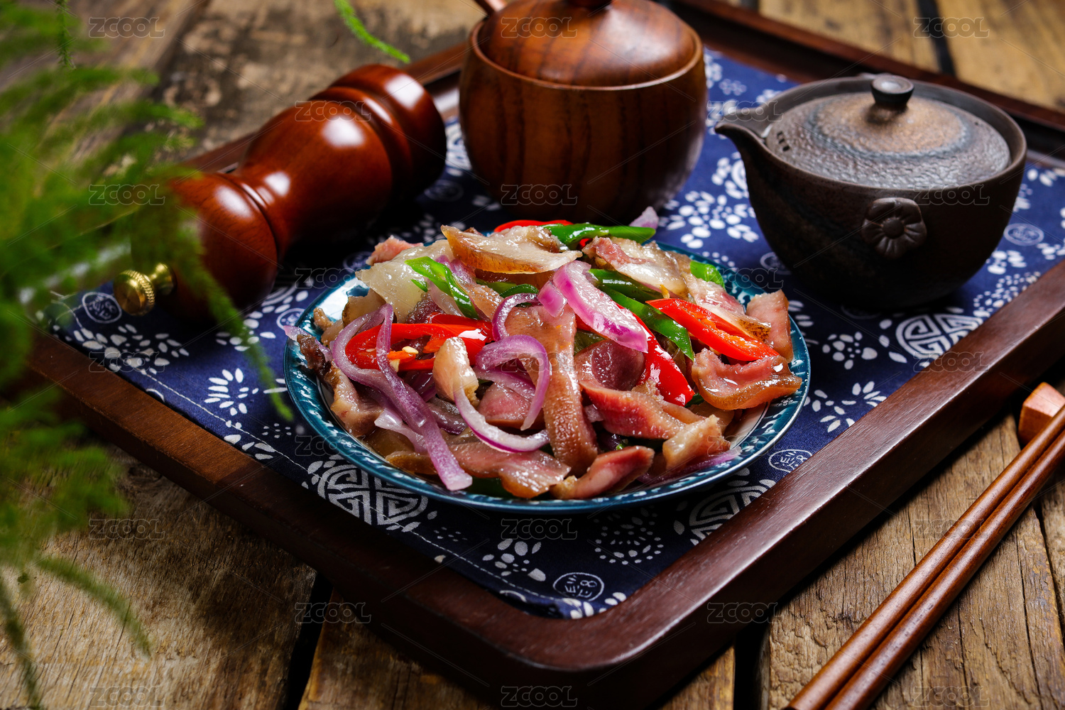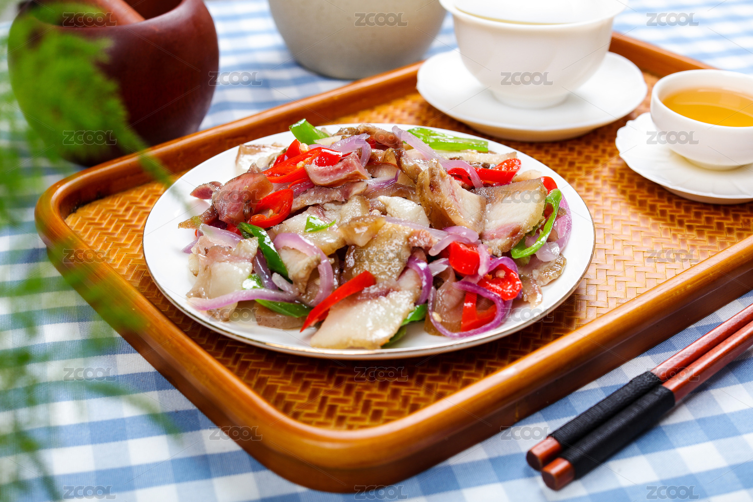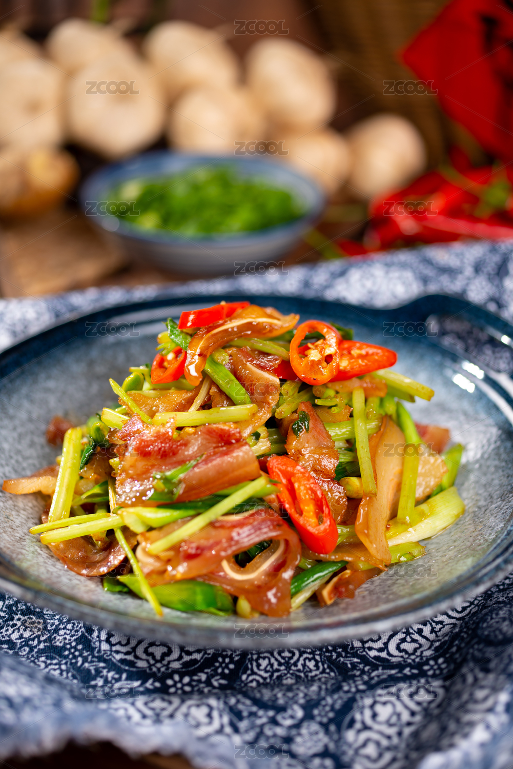 中国美食湘菜热菜小炒腊猪脸