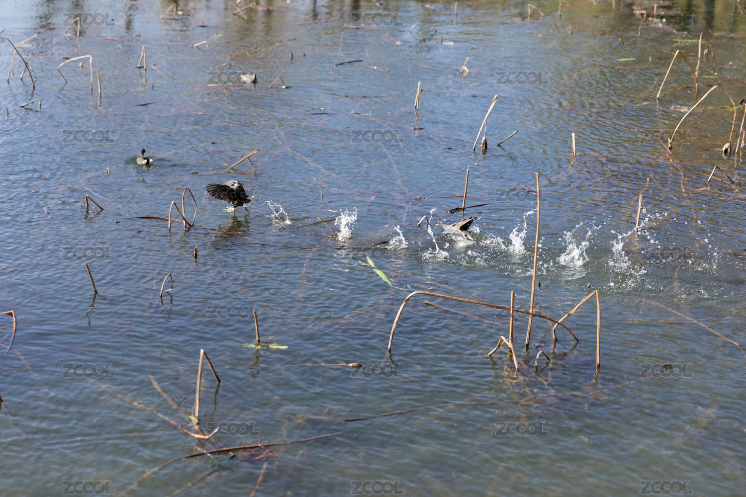 水面追逐的黑水鸡