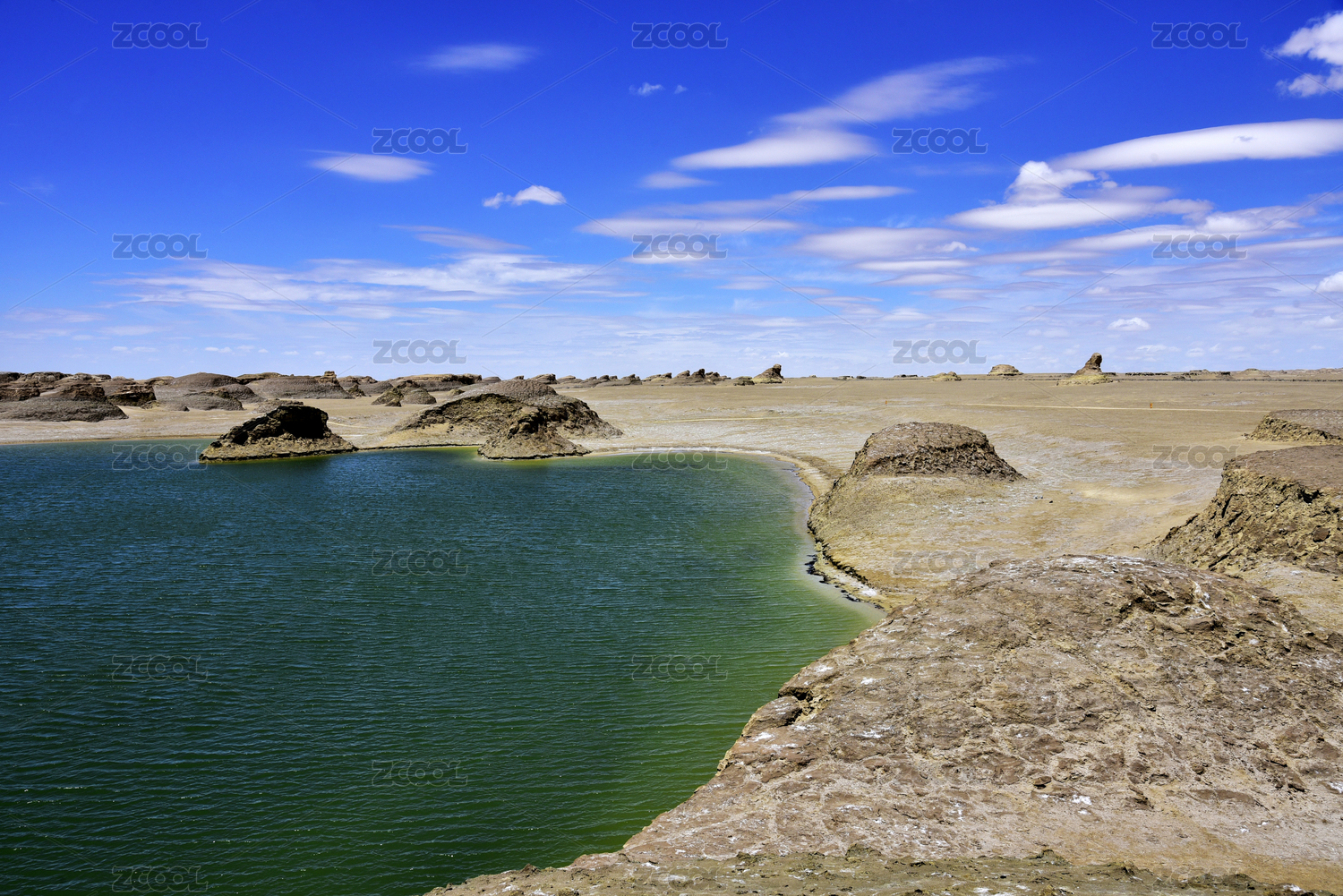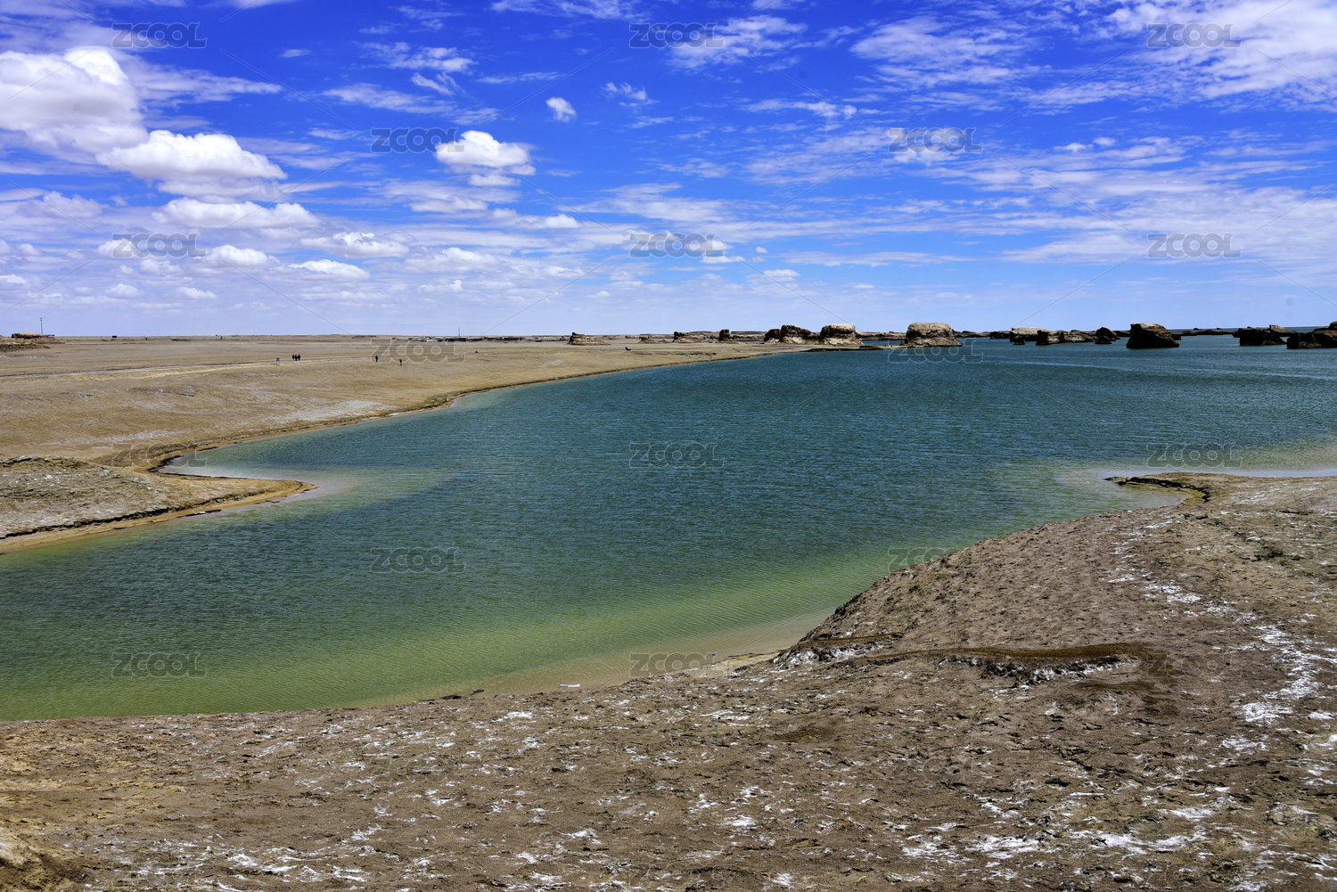 中国青海省大柴旦镇翡翠湖的蓝天白云